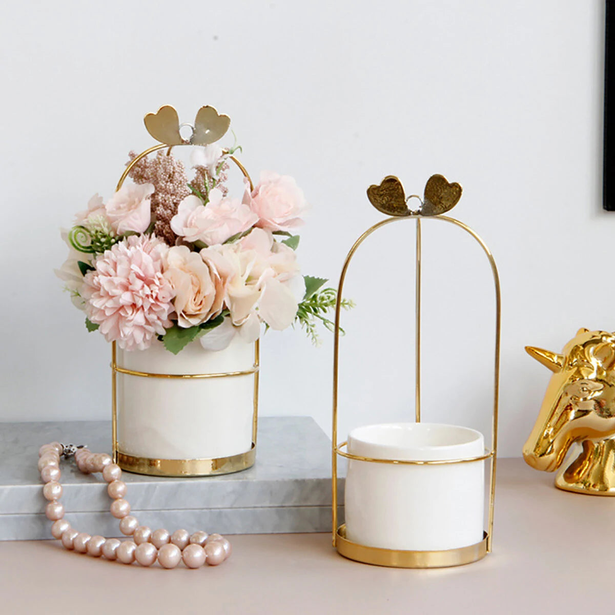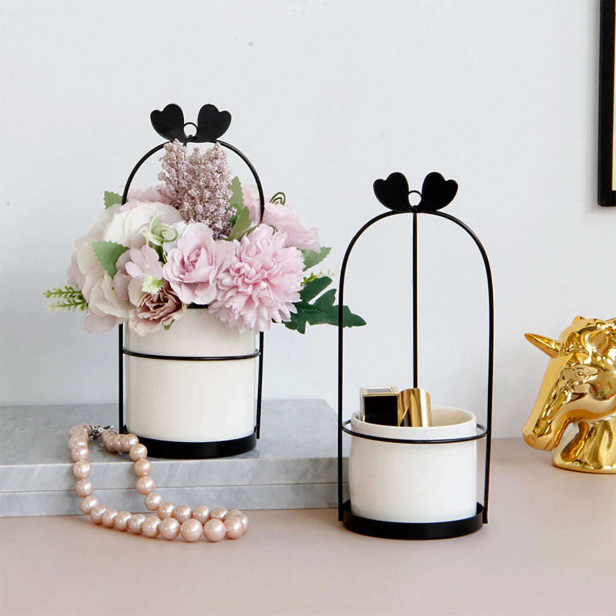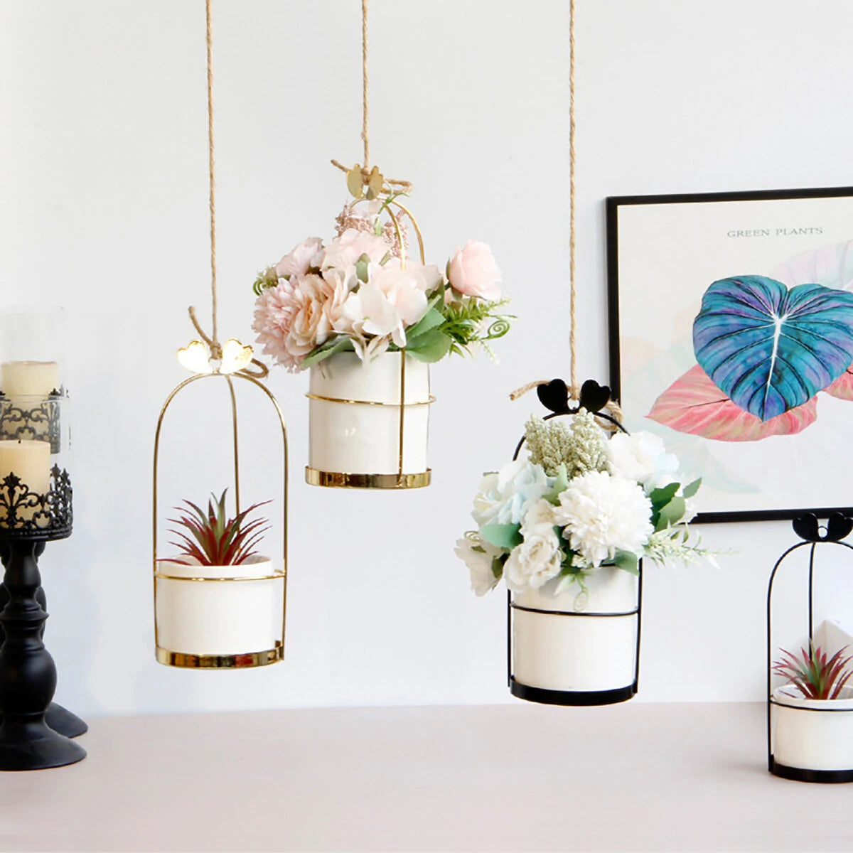 Nordic Vase Hanging Basket Wrought Iron Flower Pot Hanging Iron Frame Flower Stand Hydroponic Flower Pot Modern Wall Decoration Decoration