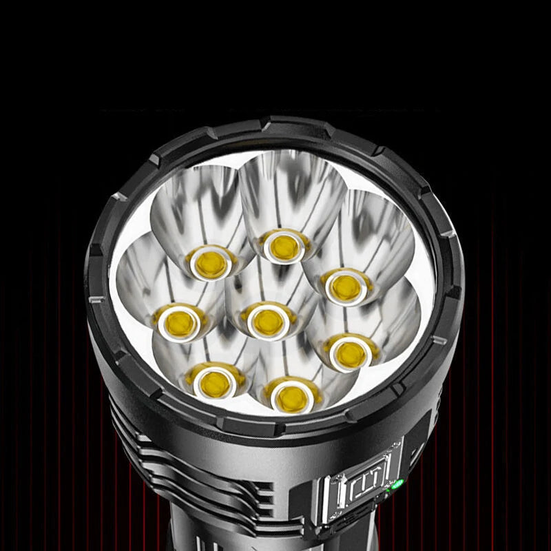 TANJE 8*P900+COB Super Bright Type-C Rechargeable ABS Housing Flashlight with 18650 Battery COB Side Light 500m Long Range Powerful LED Torch Camping Lantern
