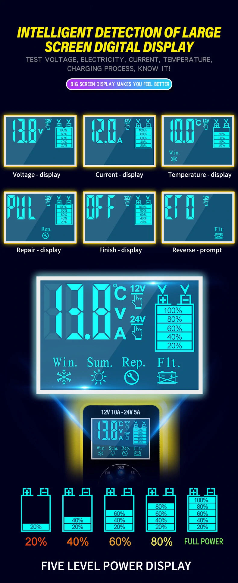 7-Stage Fully Automatic Smart Battery Charger For 12V/24V 6-180AH Start-Stop/Lead-acid Battery