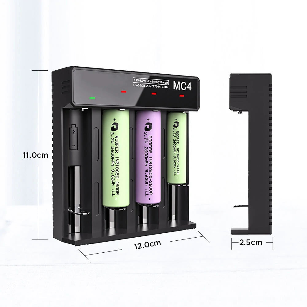 3.7V-4.2V LED Power Indicator TC/CC/CV 3Modes USB Rechargeable 4Slots Lithium Battery Charger 18650/26650/21700 Battery Charger