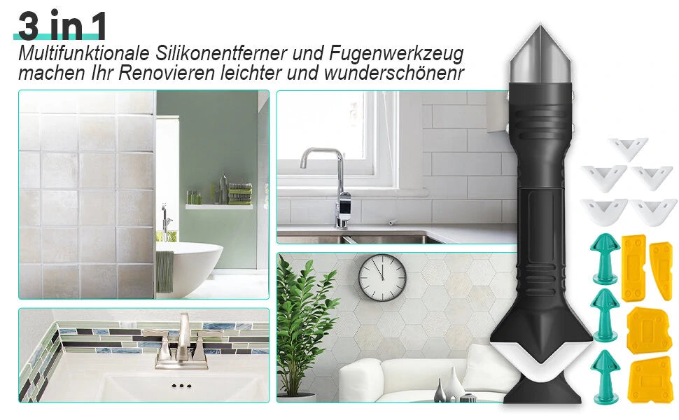 【 Upgraded Stainless Steel scraper】This 3 In 1 Caulking Tool set can help you repair the gap and clean the residual glue, which is convenient and beautiful, Improve the Agglutinating Quality and the Aesthetic Sense of Surface. Upgraded stainless steel scraper removes stubborn old glue easily