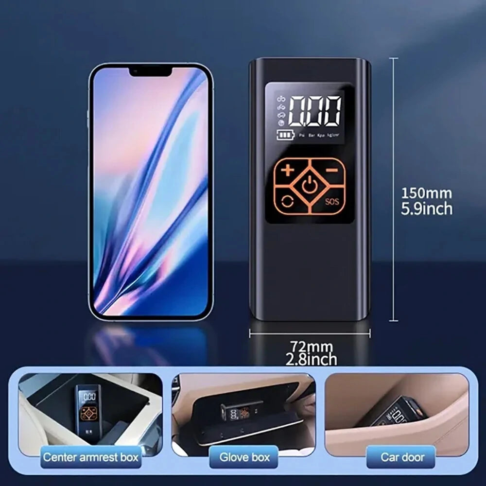 7.4V 60W Portable Car Tire Air Pump Rechargeable LCD Display Car Air Compressor Inflator For Motorcycles Bicycle Boat Tyre