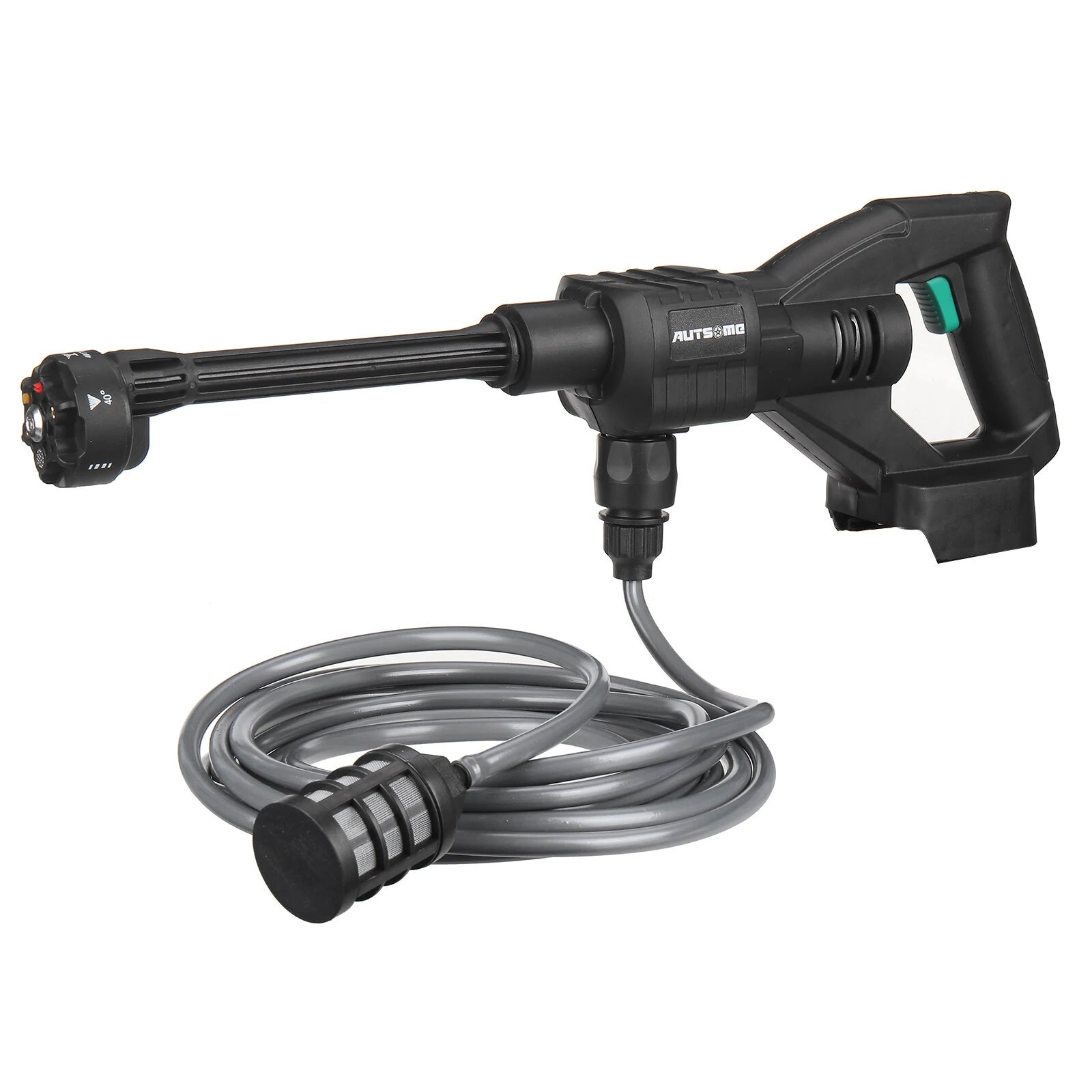 Features:--Powerful brushless motor, long-lasting power, strong energy storage and boosting capacity.--Strong water pressure 6-cylinder supercharged 20D power.--No rope car wash spayer, not limited by the site, easy and quick to operate.--6 in 1 adjustable nozzle, can adjust 6 different shapes of water splash.--Intelligent electronic control, High durability and strong endurance, no need to save electricity to wash the car Large capacity and long endurance, smooth operation without power failure, easy cleaning.--High-strength compression technology range up to 6~8 meters Long Range 6~8m.--Equipped with a foam bottle, it is more convenient to wash the car.--Very suitable for garden watering, agricultural irrigation, car washing, household cleaning, etc.--Not Incuding Lithium Battery.Specification:Brand: AUTSOMEModel: ST-7YS-550Colour: BlackMaterial: Nylon+ABSRated Power: 105WOperating Voltage: 21VLoad Current: 5ABattery Life Time: 20minMaximum Flow: 2.7/minWater Range: 6-8MPower Cord Length: 70cmInlet wire Length: 5MMaximum Pressure: 60barMotor cooling mode: automatic coolingCar washing equipment type: Household Car Washing MachineWater source type: Bucket / Bottle / Faucet Self-primingScope of application: Car washing, watering flowers, watering vegetables, spraying, garden cleaning, etc.Plug Type: US Plug / EU PlugSafety Warning:1. Mechanical impact on tissue cells is prohibited.2. The water sprayed by the water spayer has impact, please do not spray it on the crowd.Package List:1x Cordless Pressure Washer1x Removable Foam Bottle1x EU/US Charger1x 6 In1 Multi-function Nozzle1x Bottle Connector1x Hose Adapter1x Water Fitler1x 5M Long Water Hose1x ManualNote:1.Due to manual measurement, please allow a difference of 0.5-1cm.2. Due to the difference of light and screen, the color of the product may be slightly different from the picture.