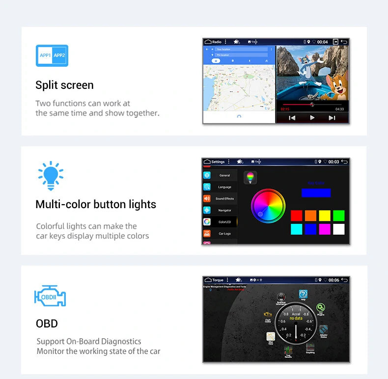 --Wifi /4G/ GPS/ Radio/ with Radio Datasystem funtion/ Rear Camera Input/ Aux in/ USB/ SD/ DAB+/ OBD/ Built-in DVR/ TPMS/ Steering Wheel Control/ External Mic and Internal Mic
