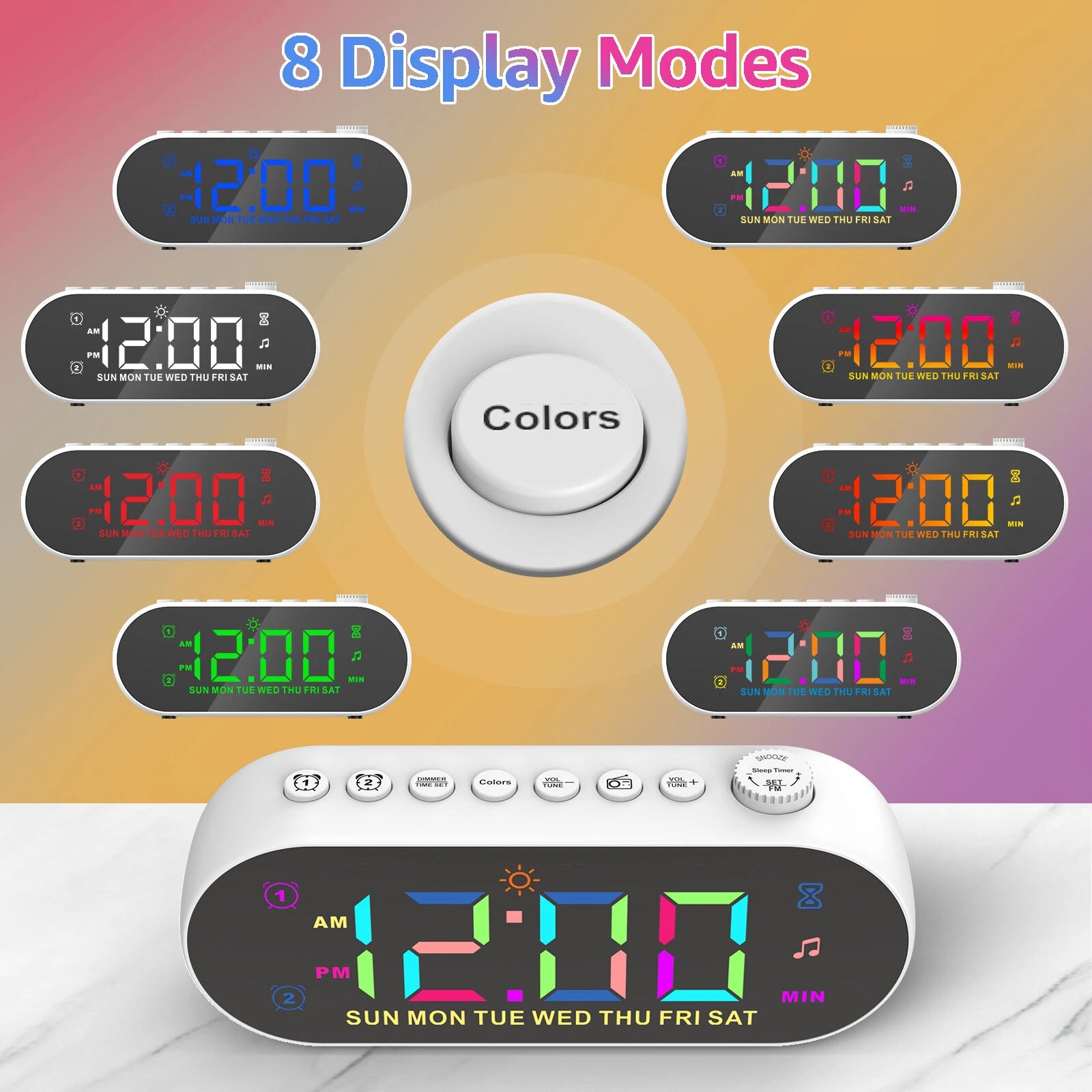 mso-bidi-font-family:'Times New Roman';font-size:10.5000pt;mso-font-kerning:1.0000pt;'>5. 'Colors' font color: In the time display state, click the COLORS key to switch the display font color (white, red, green, blue, gradient, phantom, left and right gradient, up and down gradient)mso-bidi-font-family:'Times New Roman';font-size:10.5000pt;mso-font-kerning:1.0000pt;'>