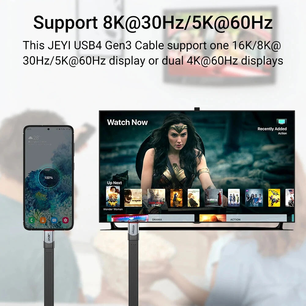 High-Speed Transfers:Delivers data transfer speeds of up to 40 Gbps.8K display:Supports Single 8K@60Hz Dual 4K@60Hz displays with exceptional video bandwidth, or display 4K on two screens simultaneously.Rapid Charging:Reliably charges and powers devices with up to 100W of power delivery.Wide Compatibility:Support TB 4 and Backward compatible with TB3, USB4, USB 3.1, USB 3.0, and USB 2.0.More Durable:Premium TPE flex core and FPC flexible cable outer body.In the test, it can withstand 15,000 bends and 10,000 insertions and removals.Please note:When both your input and output devices support high-speed transmission, so the usb 4 cable transmission can support 40Gbps, and the condition to support 8k display requires both your output device and your display to support 8K display.