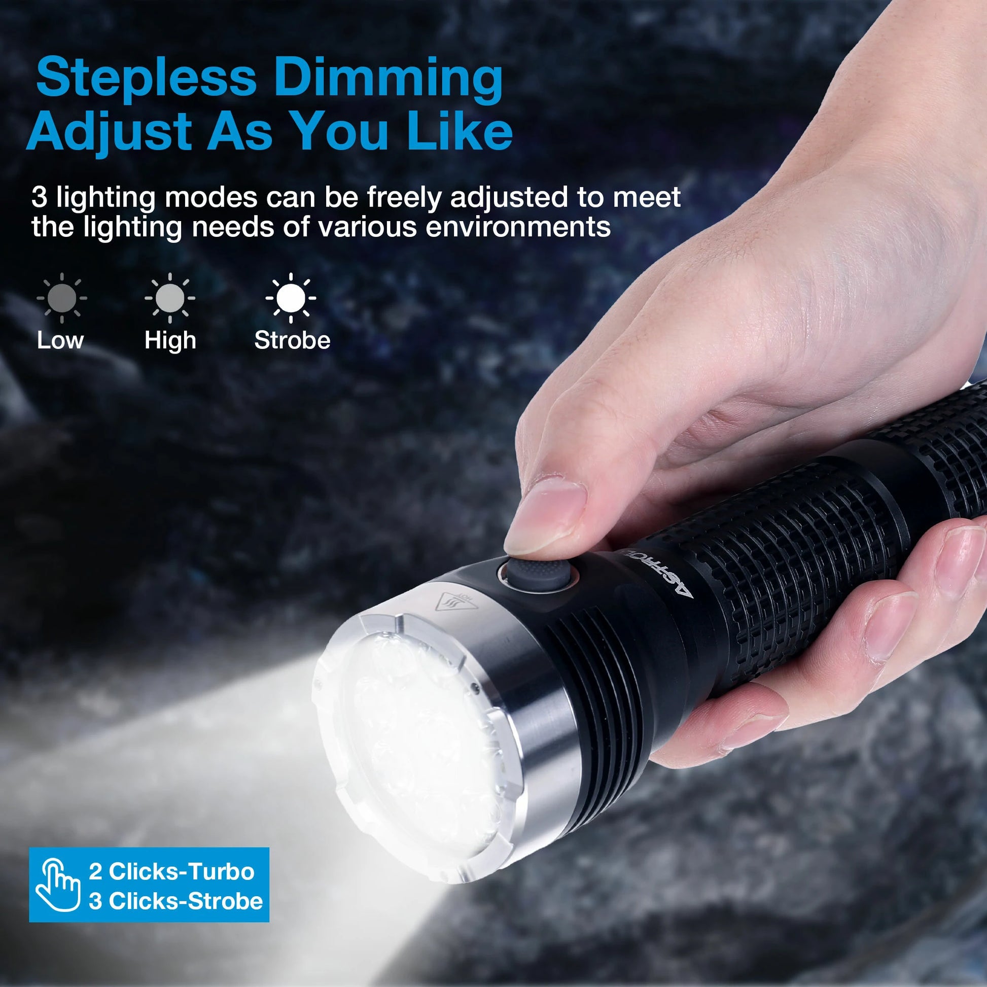 | Long Press | 1 click to turn it on, then long press to smooth ramping | Smooth Ramping |