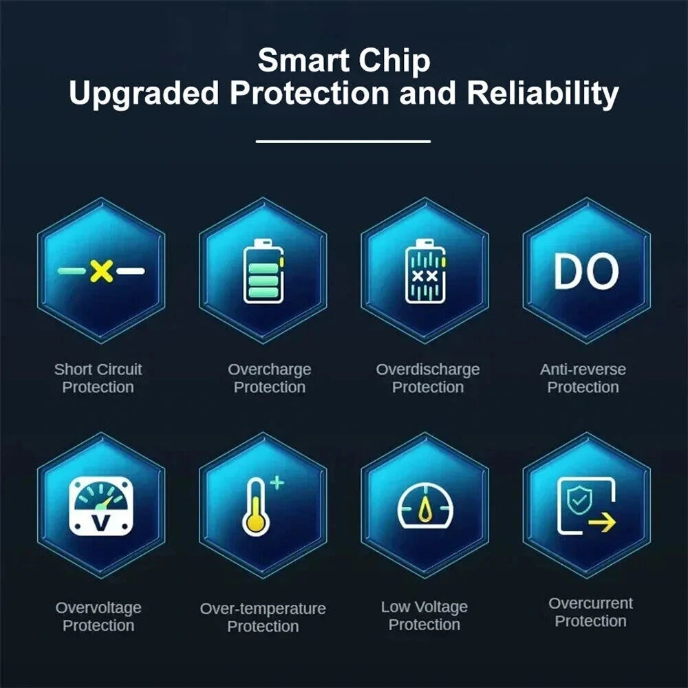 2. Multiple Protection: 8 protection methods against short circuit, overcharging, over discharging, anti reverse, overvoltage, over temperature, low voltage, and overcurrent, ensuring safer use.