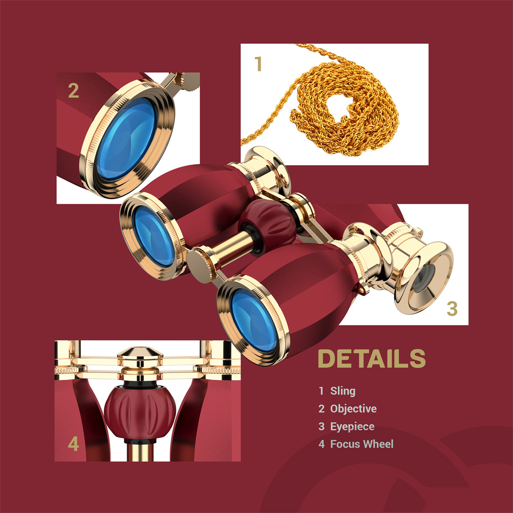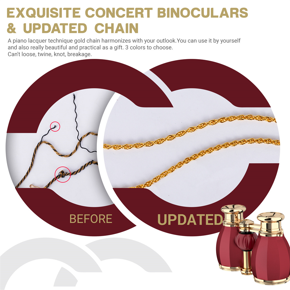 7.Exquisite Concert Binoculars & Updated chain: A piano lacquer technique gold chain harmonizes with your outlook. you can use it by yourself and also really beautiful and practical as a gift.