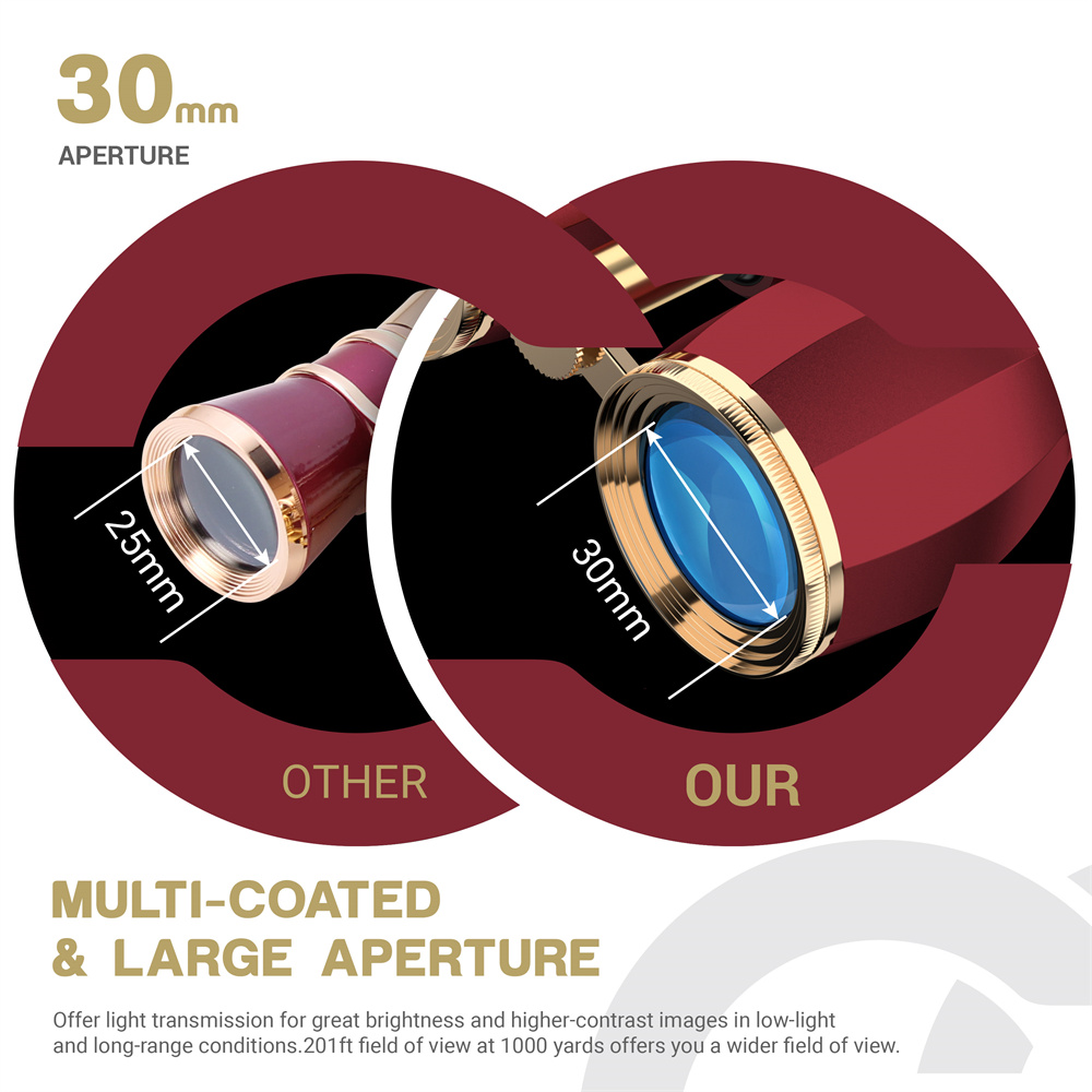 3.Large Eyepiece diameter easily gather more extra light with bright image and offer you wider field of view