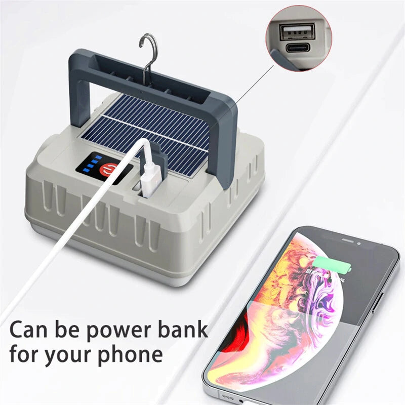 Solar Camping Lantern Flashlights USB Rechargeable Hanging Power Bank Waterproof Lights for Camping Hurricanes Emergency Power Outages Indoor Outdoor