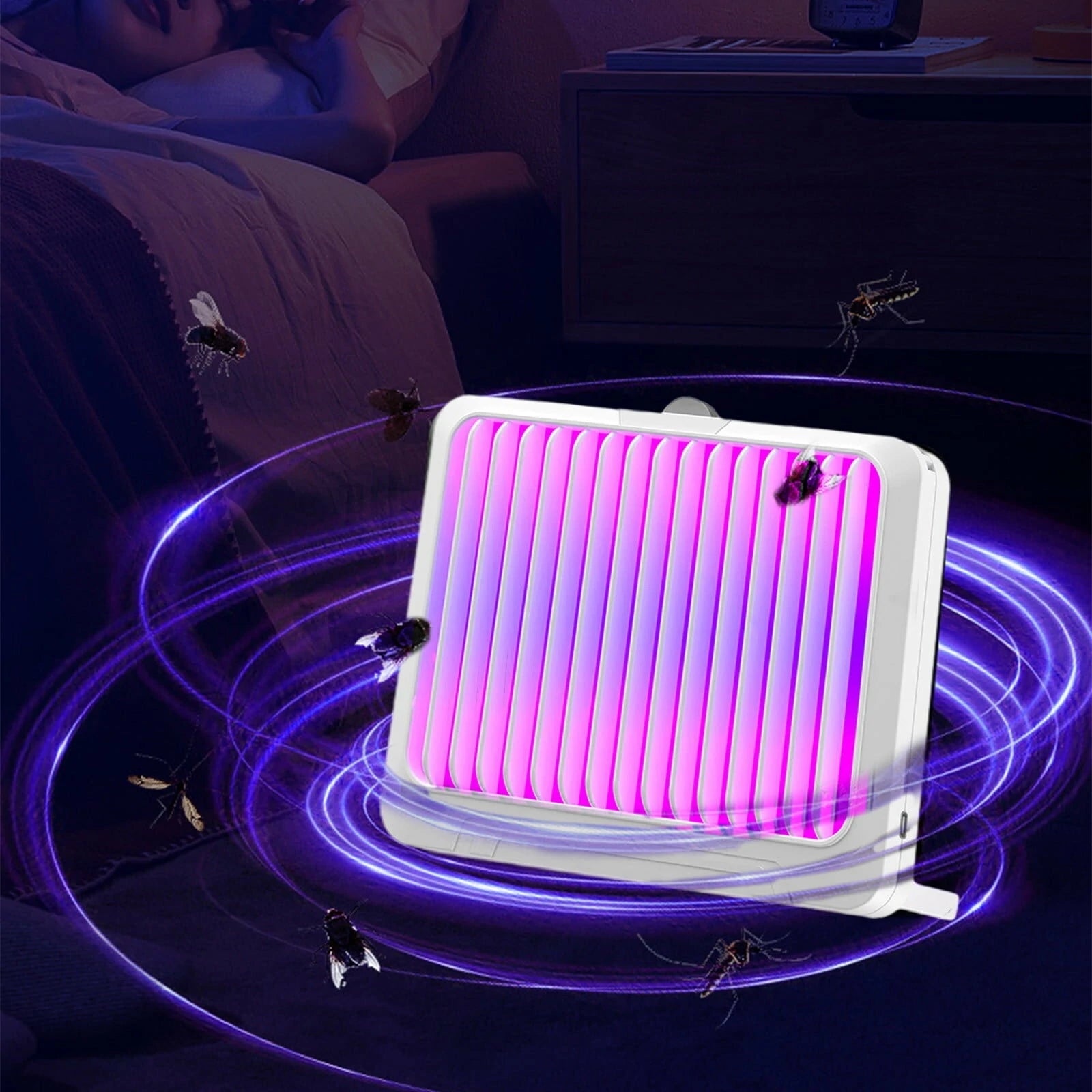 Powerful High Voltage Mosquito Lamp 3000V Indoor and Outdoor Use with Insect Attractant Noiseless Operation Safety Plastic Casing USB Powered Versatile Setup Options in Black or White