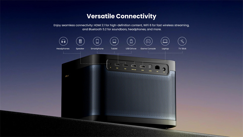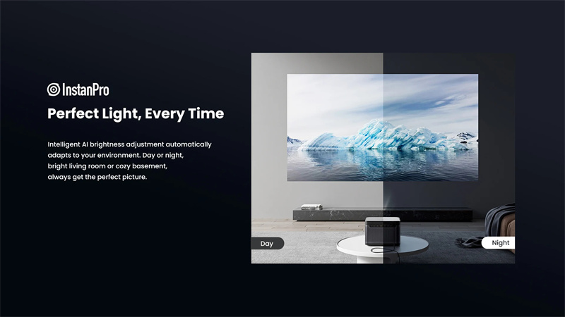 5. The projector incorporates InstanPro AI Image Setup. Auto-focus, auto keystone, screen fit, and obstacle avoidance make setup a breezing.