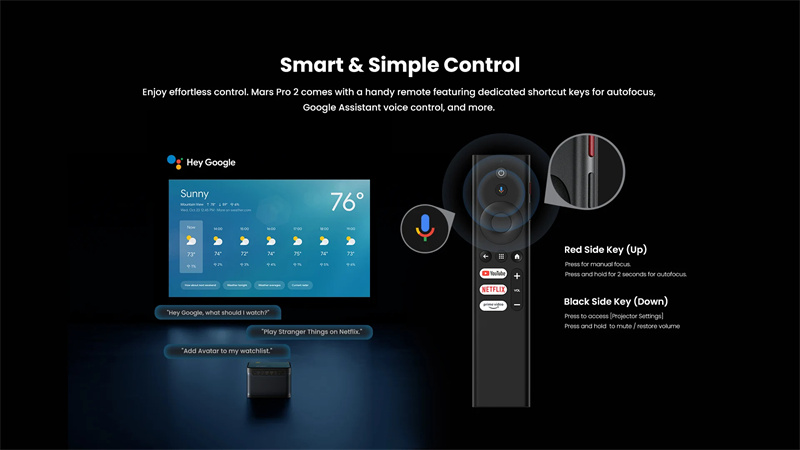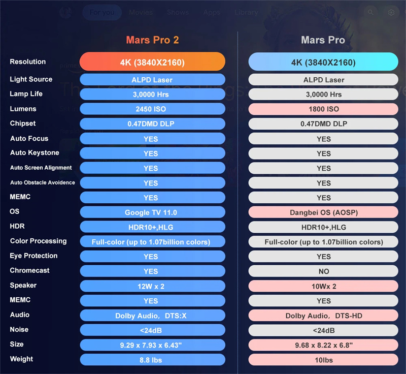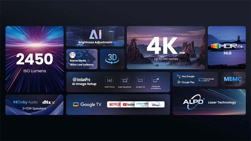 1. A Innovator in AR technology, this is the world's First 4K Laser Projector with Google TV™ and Licensed Netflix embedded.2. Comes equipped with ALPD laser technology, which provides remarkably vivid images, even in daylight, due to the 2450 ISO lumens brightness.