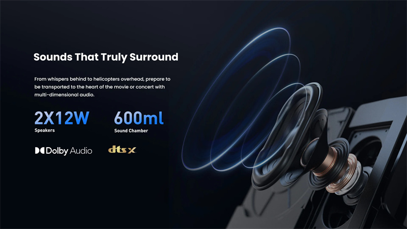 4. The Dual 12W built-in speakers excel in Audio performance with Dolby and DTS:X enhancement, offering a truly immersive sound experience.