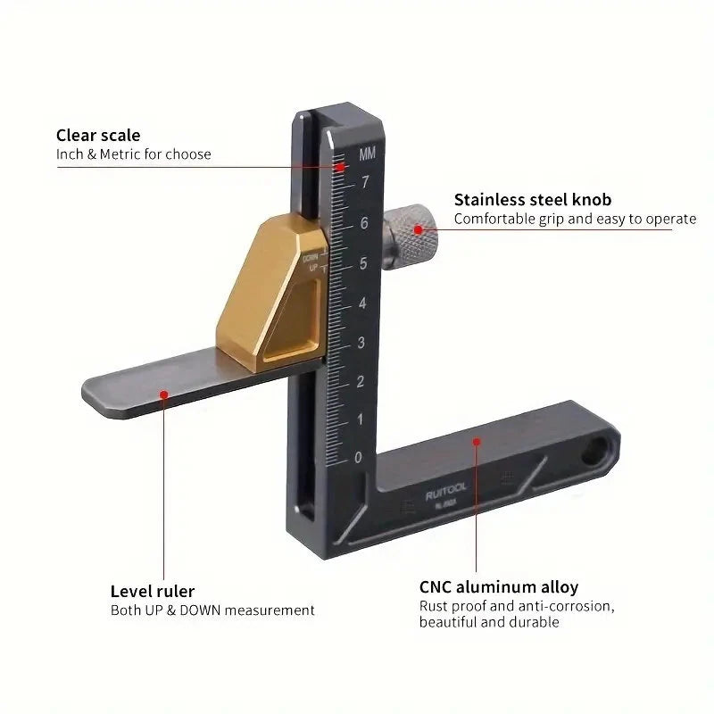 Aluminum Alloy Height Gauge Adjustable Table Saw Depth Measuring Tool Inch Metric Units Premium Woodworking Adjustable Depth Gauges for Carpentry