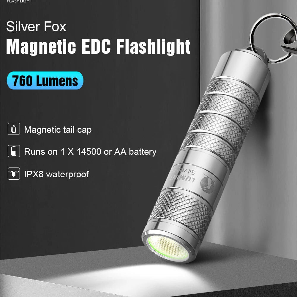 Lumintop Silver Fox 2.0 760LM EDC LED Keychain Flashlight with 14500 USB-C Charging Battery, Powerful Magnetic Tail Mini Torch Outdoor Camping Pocket Light
