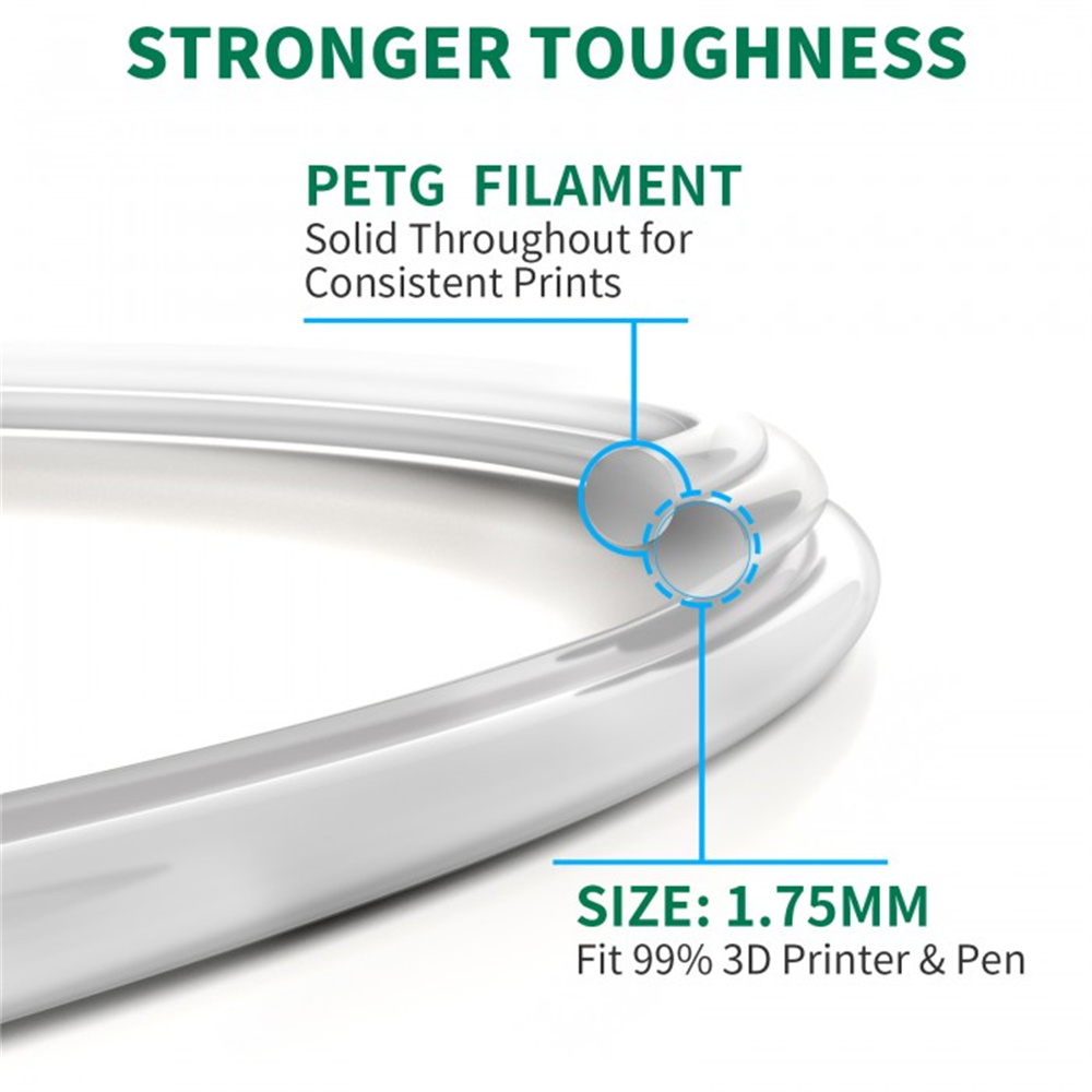2.High Dimensional Accuracy: Produced with precision, this PETG filament has a diameter of 1.75mm with an accuracy tolerance of +/- 0.03mm. It is compatible with most FDM 3D printers, providing high accuracy and stable printing results.