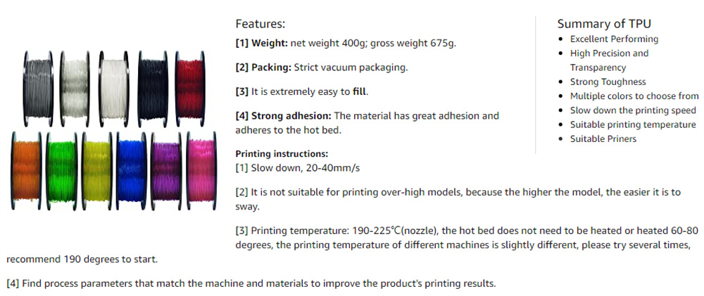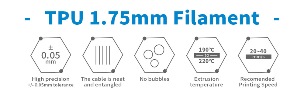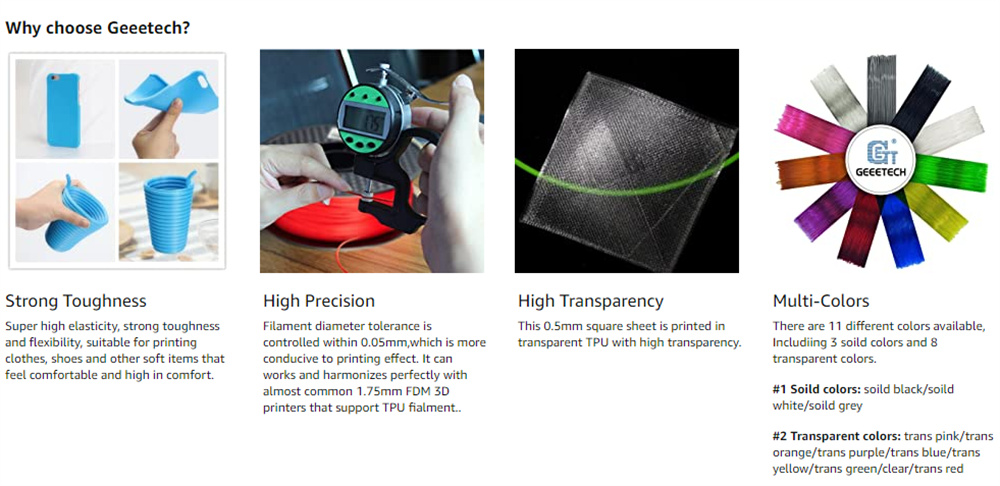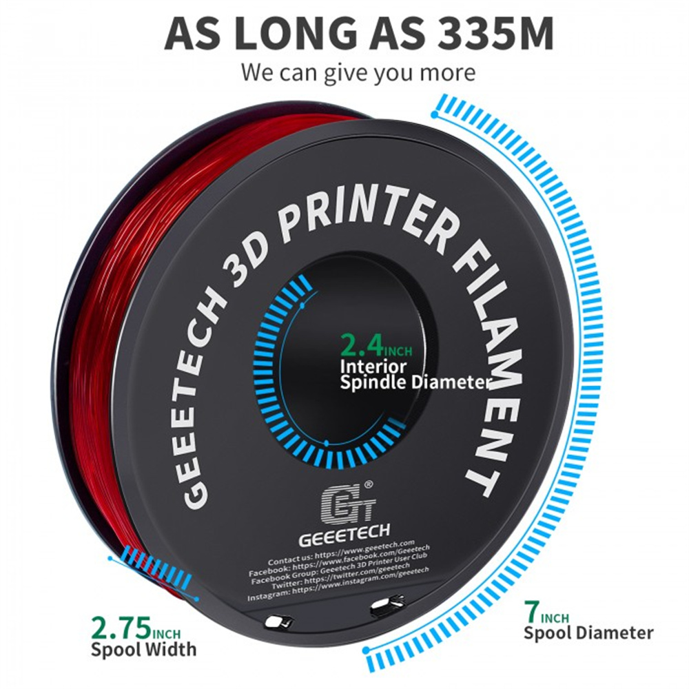 3.Wide Compatibility and High Dimensional Accuracy: Geeetech TPU filament is compatible with short-range extrusion FDM 3D printers that use 1.75mm diameter filament. It maintains a high dimensional accuracy of +/- 0.05mm, ensuring consistent and reliable performance across various printer models.