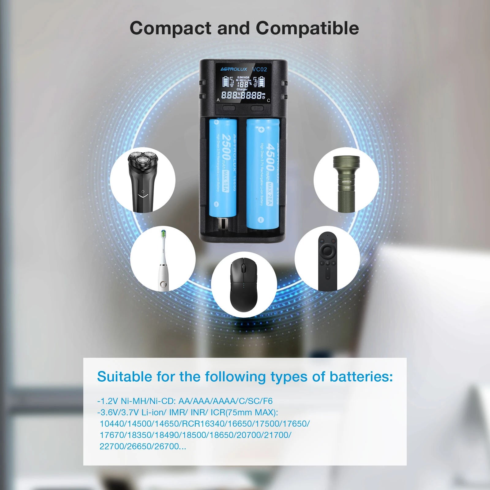 Astrolux VC02 Intelligent Battery Charger: Built for Performance, Made to Last.This dual-slot independent charger