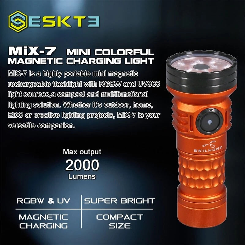 SKILHUNT ESKTE MiX-7 Gen 2 Multi-color High CRI 2000LM 18350 EDC LED Flashlight High Lumens Magnetic Charging Mini Torch Outdoor Bright Searlchlight