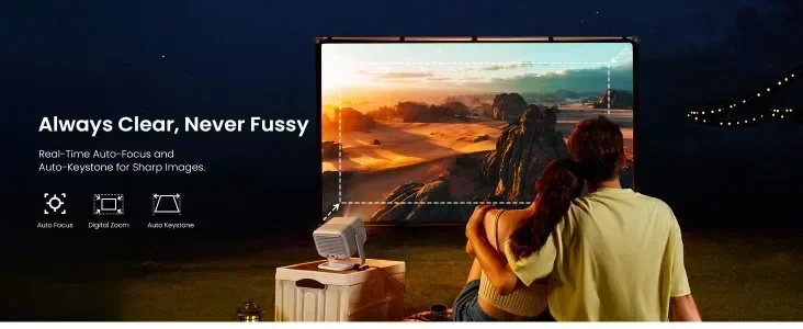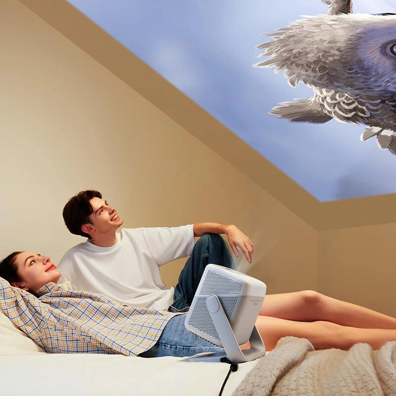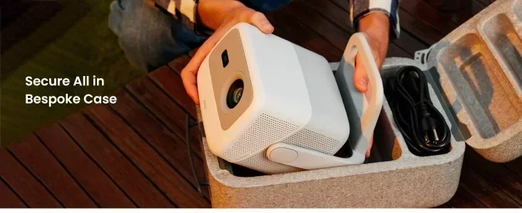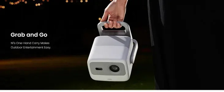 2. Portable Mobile Gimbal Design: Features a 127° rotating gimbal for flexible placement and easy setup with intelligent keystone correction and autofocus.