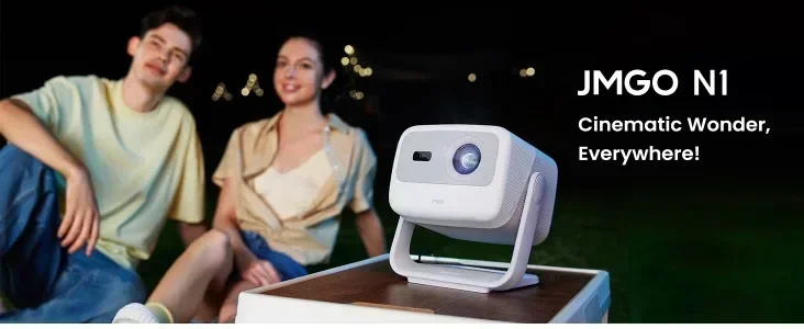 JMGO N1 1080P FHD Android TV Projector 750 ISO Lumens 150 Inch Screen Triple Laser Home Theater Support WiFi 6 & BT5.0 Gimbal Automatic Image Correction Built-in 2x5W Dynaudio Speakers 3D Projector Home Cinema