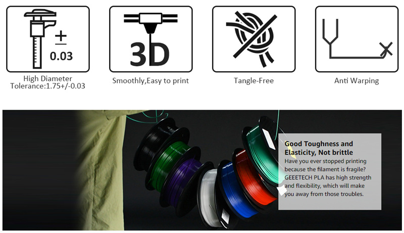 1. Dimensional Accuracy & Consistency: Strict tolerances with a diameter of 1.75 mm and dimensional accuracy of +/- 0.03 mm, ensuring high-quality prints every time.