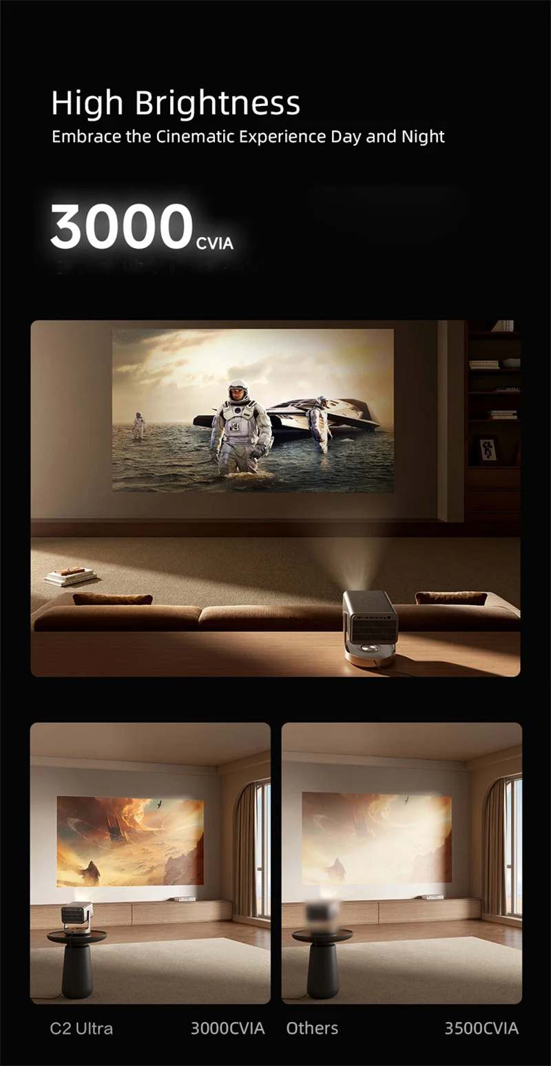 1. Superior Brightness: Boasting 3000 CVIA Lumens, it delivers striking and vivid visuals, ideal for various ambient lighting conditions.