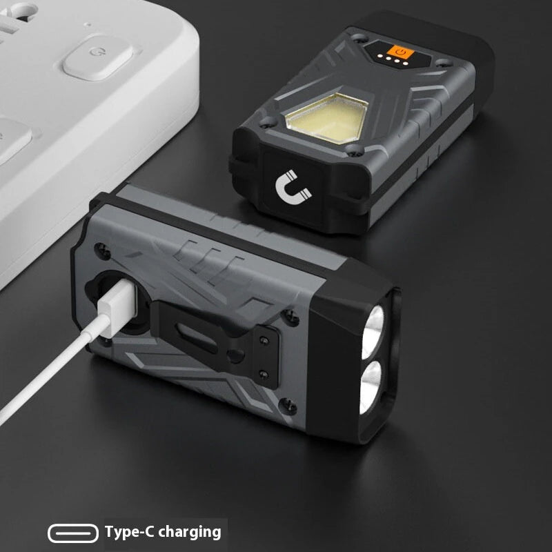 Bikight SD12 Dual Light LED Keychain Flashlight With COB Sidelight Multifunctional Clip Headlamp Magnetic Maintenance Light Outdoor Camping Tent Light USB Rechargeable LED Work Lamp