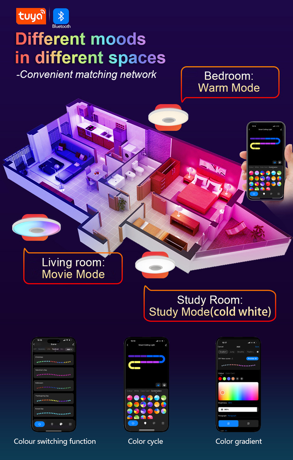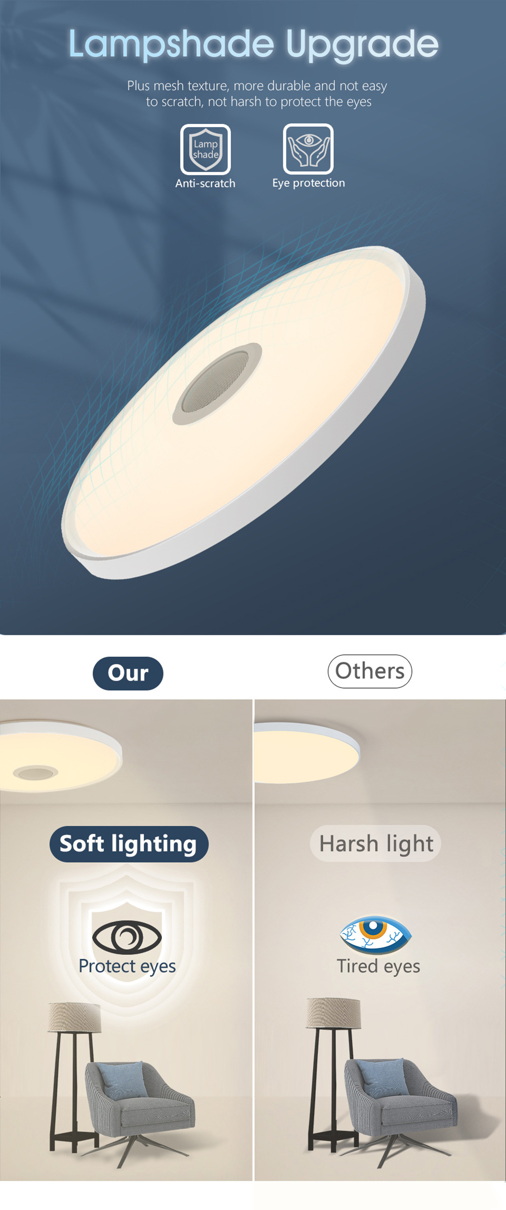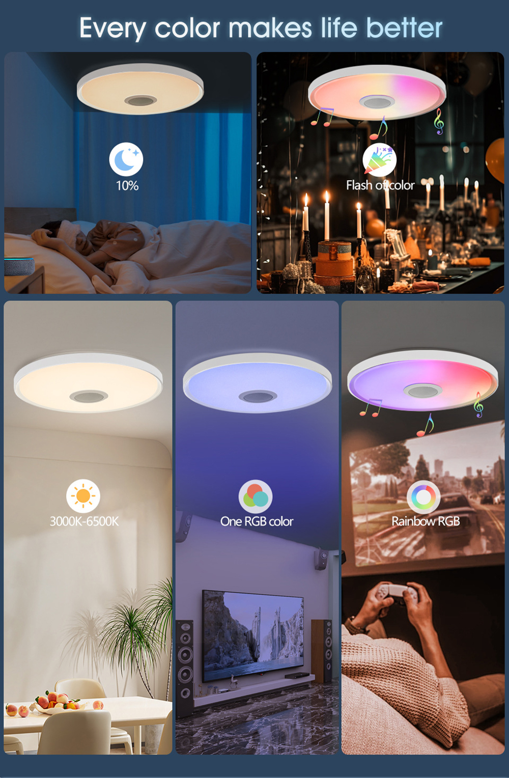 - Built-in Bluetooth Speaker: Enjoy a seamless audio experience with the built-in Bluetooth speaker in the ceiling light. Stream your favorite music or podcasts directly from your device. Perfect for creating the ideal atmosphere in any room!
