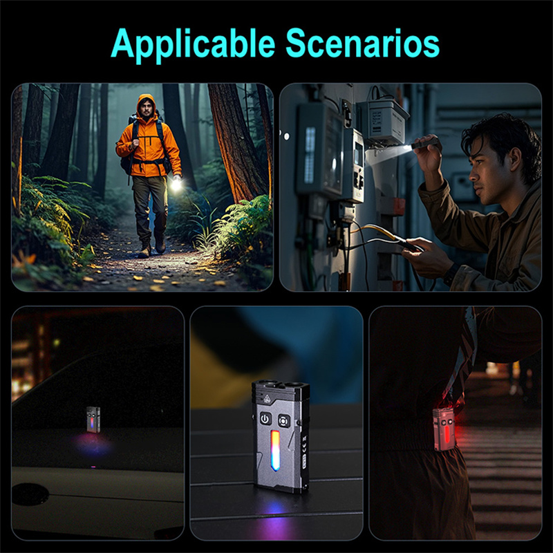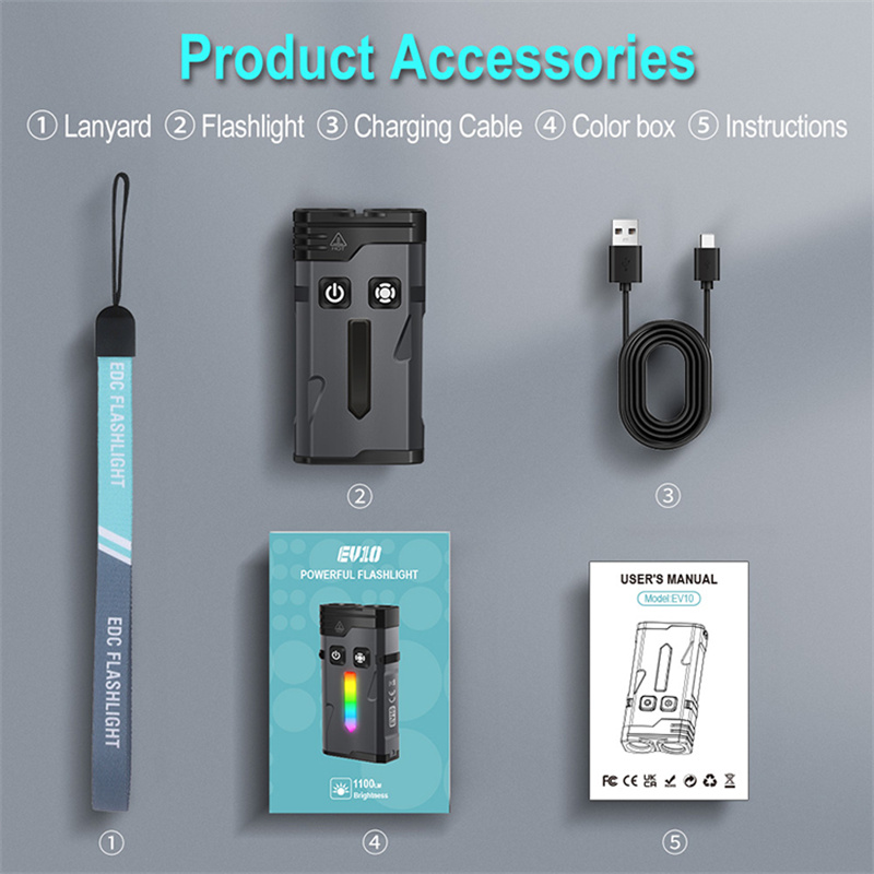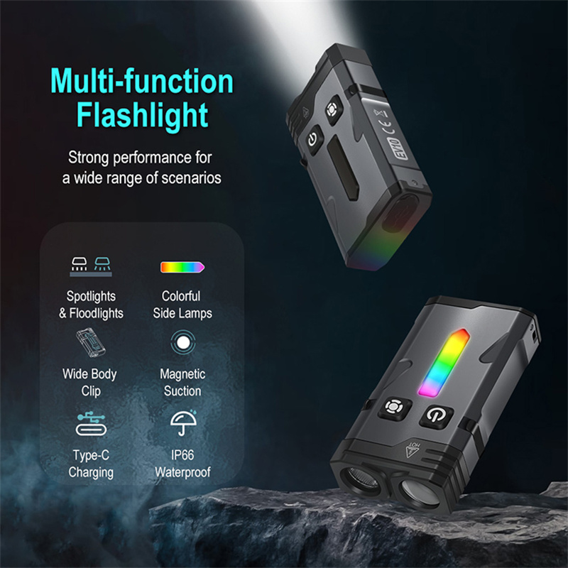 SEEKNITE EV10 1100LM EDC Keychain Flashlight Polypan-RGB Flash Color Clip-on Light Type-C Rechargeable Mini Portable Magnetic Flash Lights for Signaling Cycling Outdoor or Indoor Use