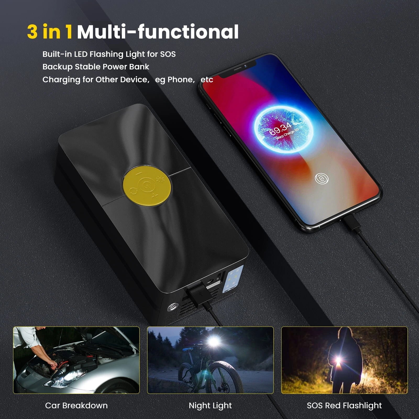 - Multifunctional Utility: This air pump doubles as a power bank for devices with a USB port, and features LED lighting and SOS signal capabilities. Perfect for camping trips or emergencies, providing both inflation and power support in one compact package.