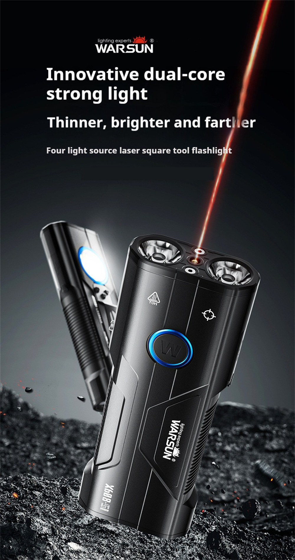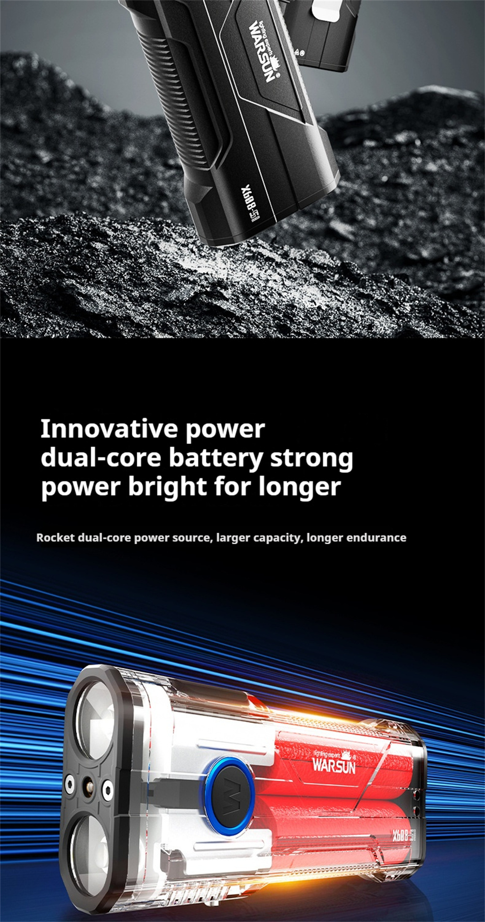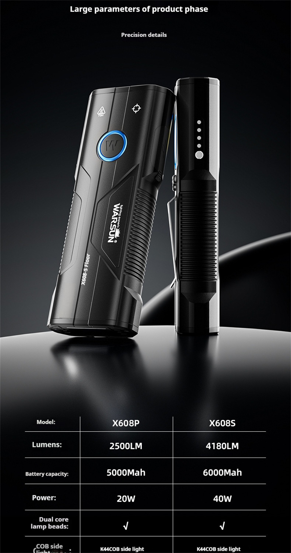 Warsun X608S 4180LM Ultra Bright LED+COB Flashlight Built-in 6000mAh Battery Type-C Rechargeable Torch Multi-functional Outdoor Emergency Portable LED Light