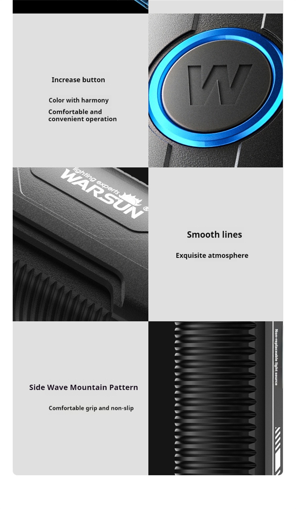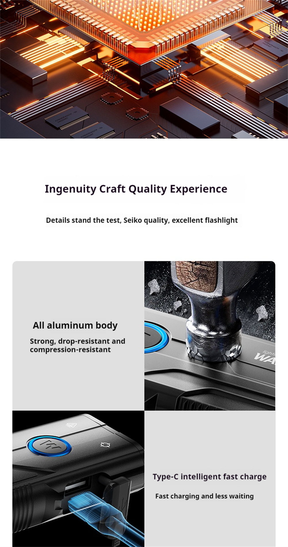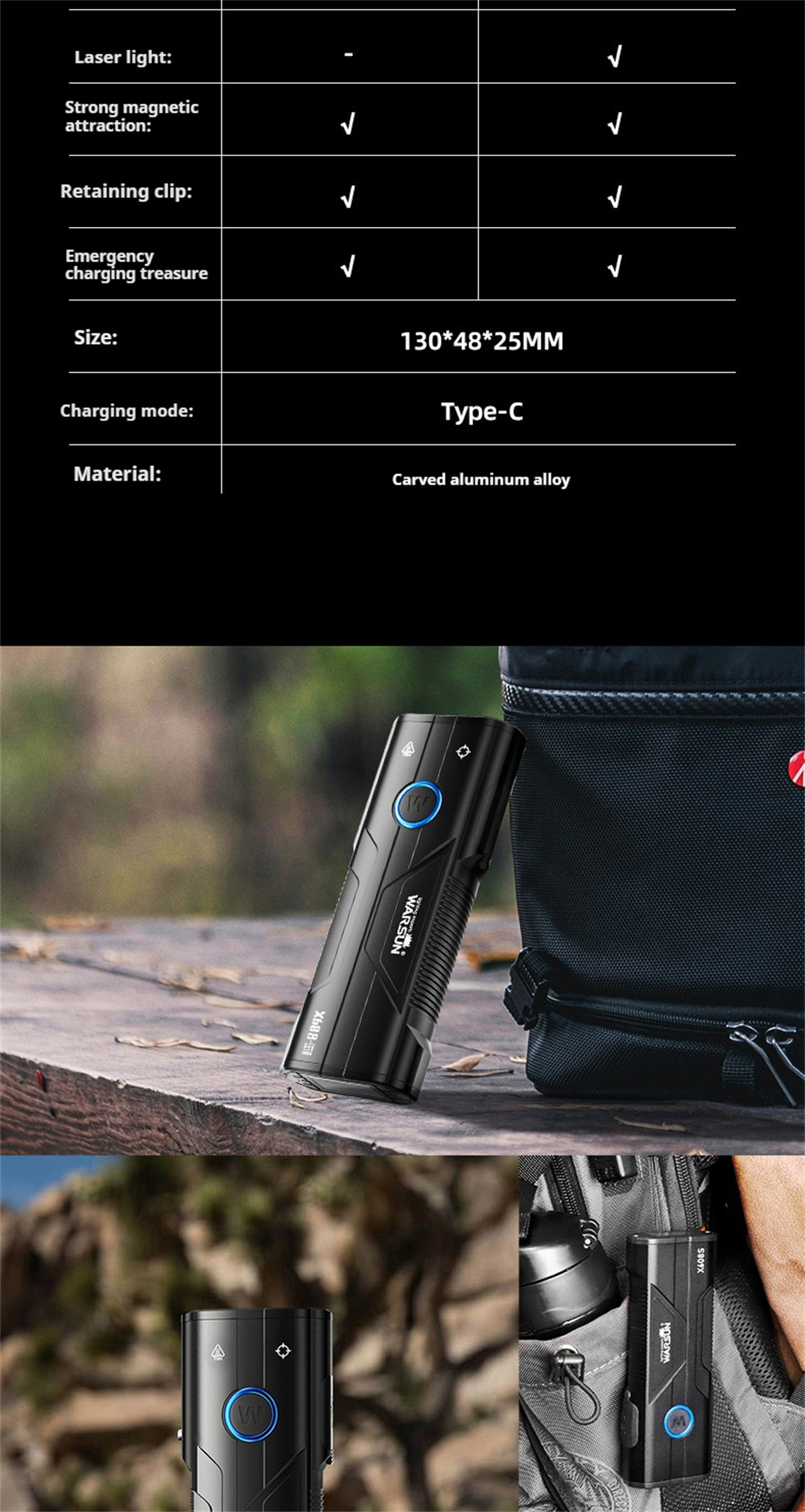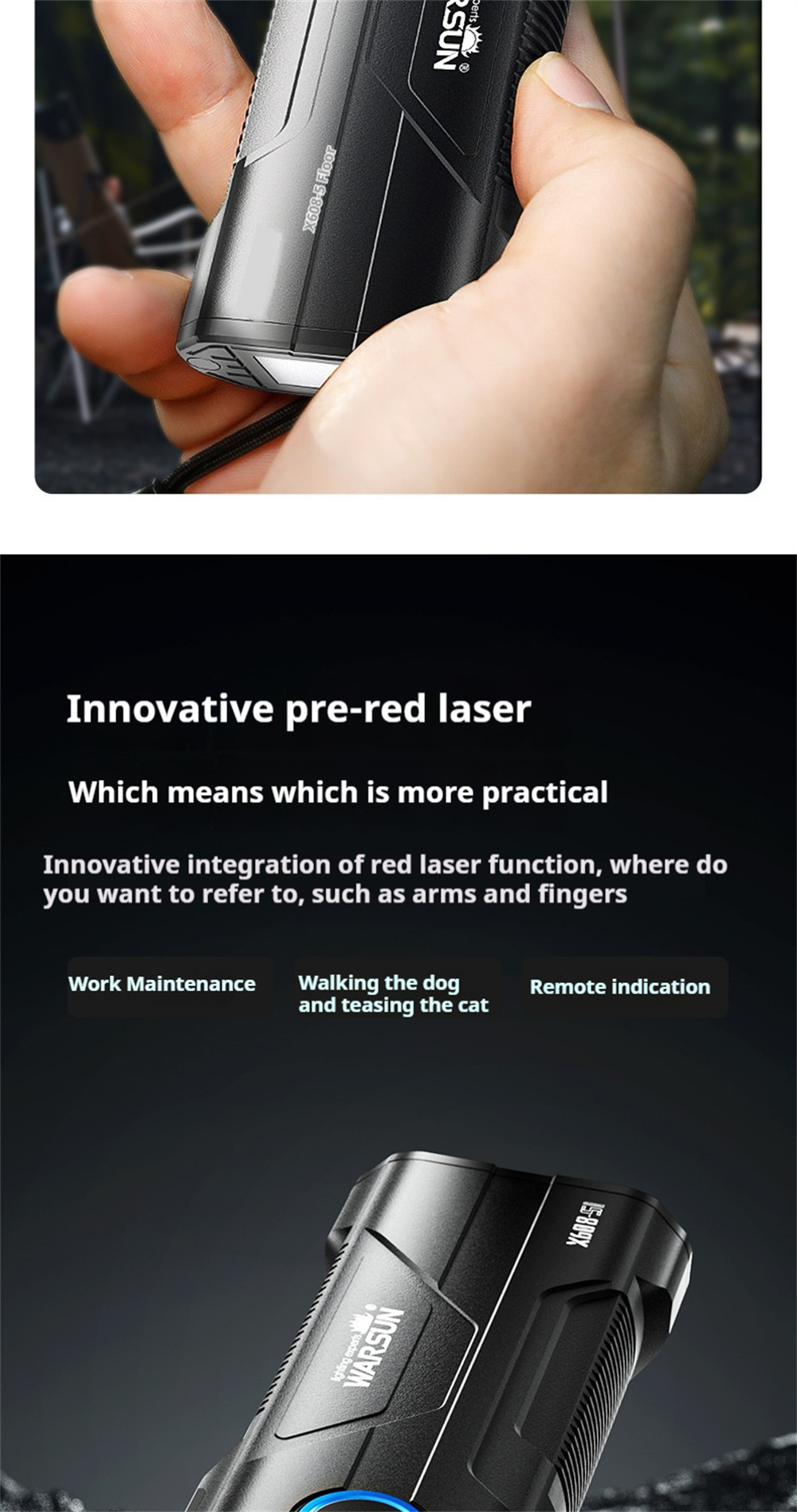 Warsun X608S 4180LM Ultra Bright LED+COB Flashlight Built-in 6000mAh Battery Type-C Rechargeable Torch Multi-functional Outdoor Emergency Portable LED Light