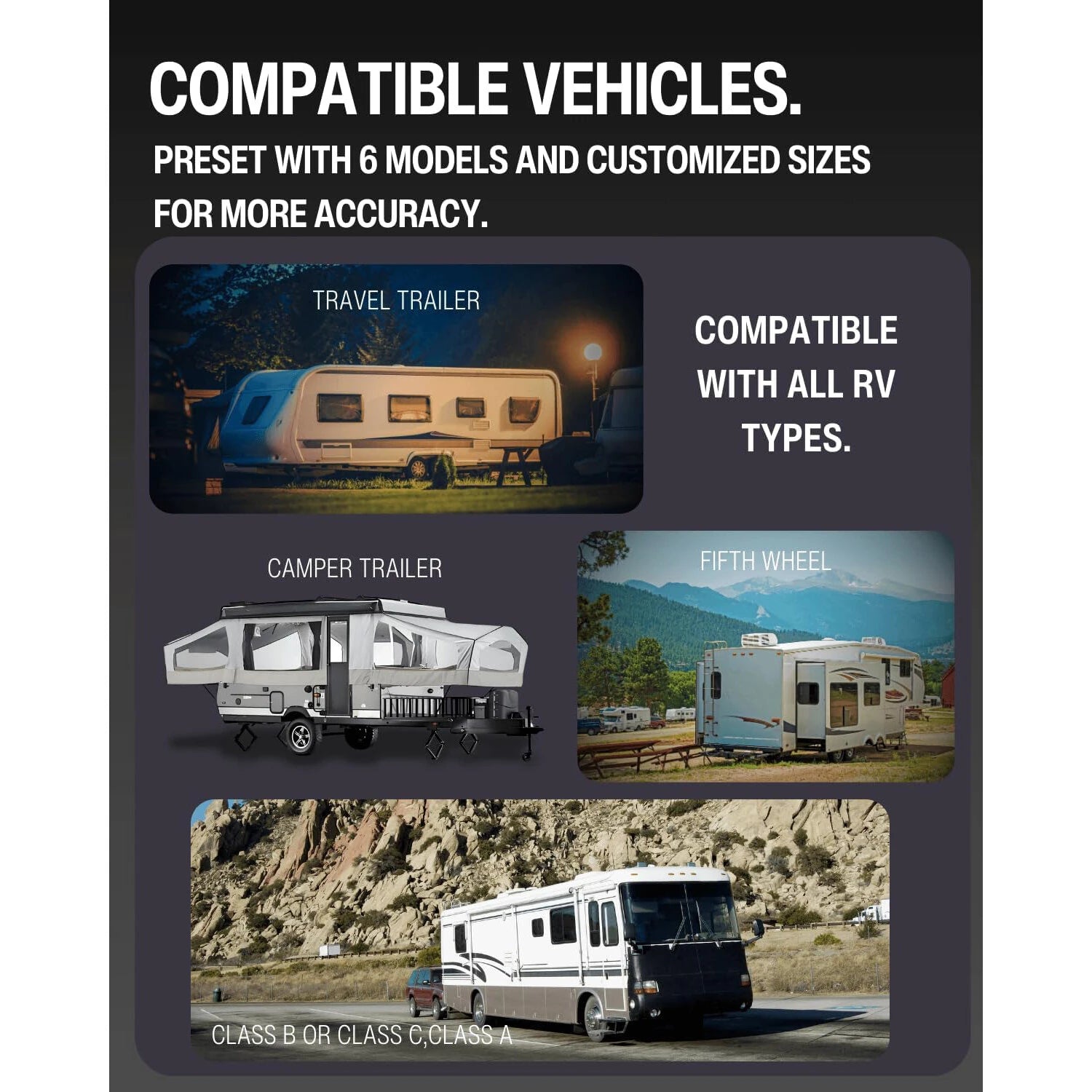 1. Universal Compatibility: The RVS01 supports a wide range of RV types, including Class A, Class B, Class C, Fifth Wheels, Travel Trailers, and Hybrid/Pop-Up Campers. No matter your vehicle, this device ensures seamless integration, adapting to various models effortlessly.