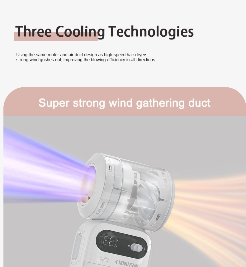 5-blade 100 Speed Handheld Turbine Electric Fan High Speed Outdoor Cooling High Wind Power Turbo Fan Small Fan Portable Smart Display Mini Fan