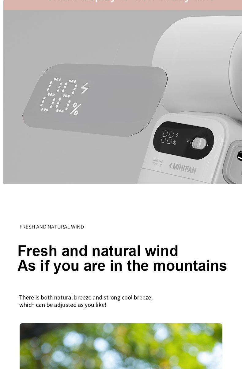 - Smart Display: Keep track of your fan’s performance and battery life in real time with the smart display. The clear LED screen updates you on the speed setting and the remaining battery percentage, offering a user-friendly experience.