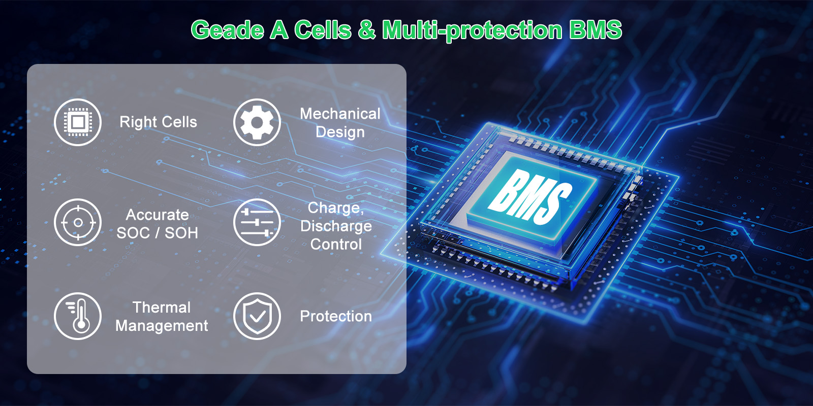 Designed with an off-grid inverter and BMS technology, it ensures stable performance through effective battery management, optimized power flow, and protection against overcharging.