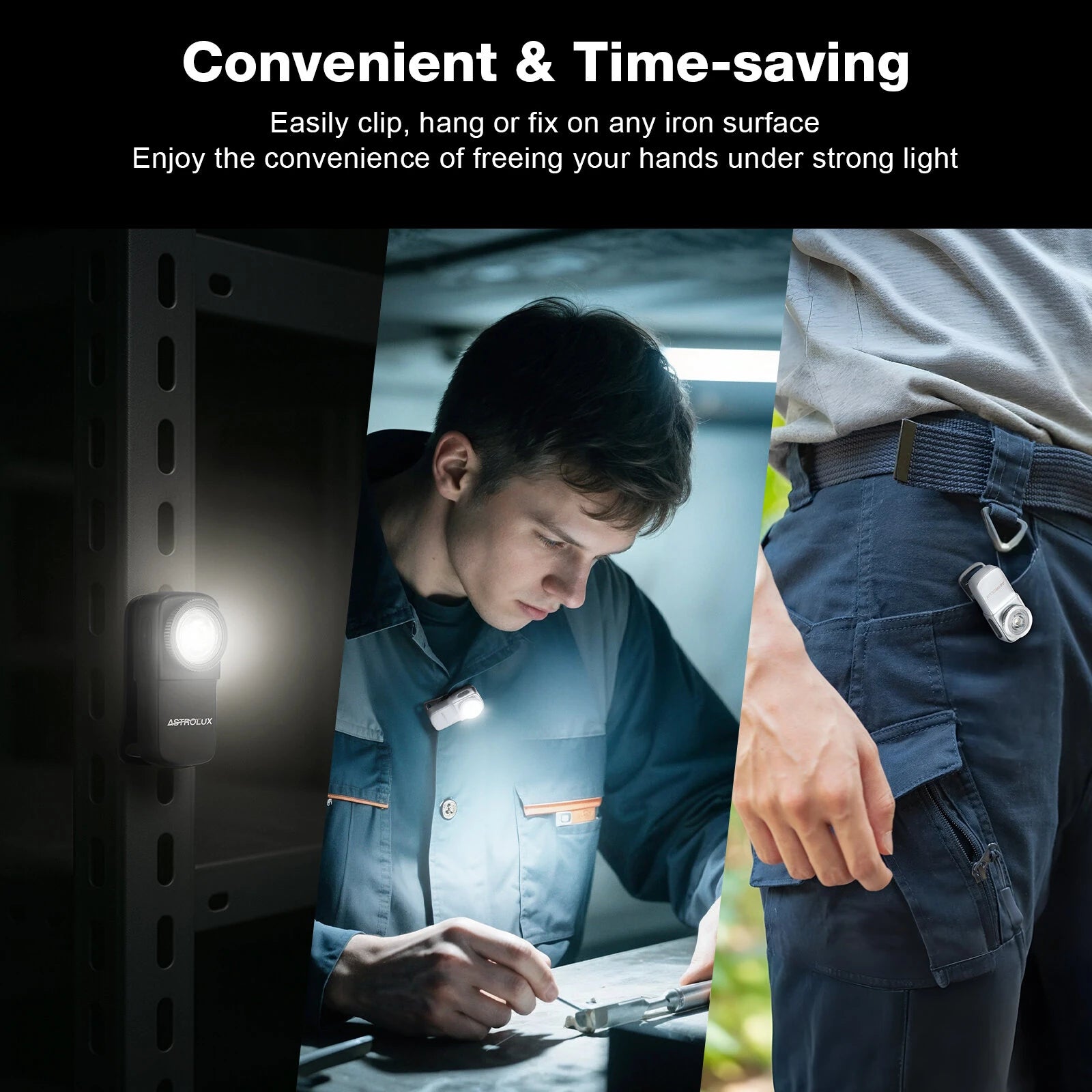 Designed for versatility, the CP01’s sturdy clip attaches securely to clothing for hands-free use. Its magnetic base sticks to metal surfaces for overhead lighting, and the lanyard hole ensures quick access whenever you need it. Always within reach, always reliable.