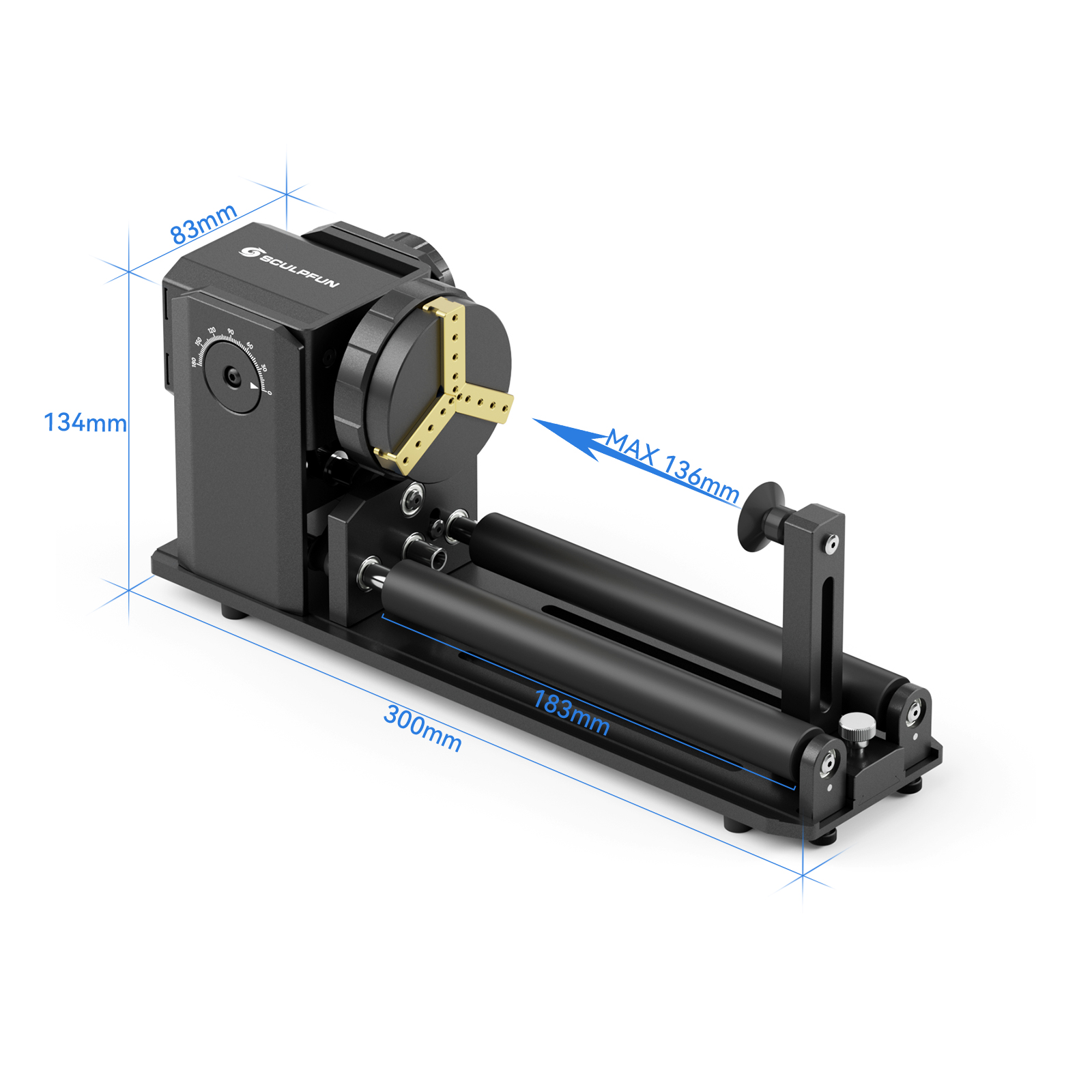 1. Versatile Four-in-One Rotary Roller: SCULPFUN RA Pro Max is equipped with a roller that offers two width adjustment options, making it suitable for engraving the regular cylindrical objects in various sizes. Additionally, it comes with 3 sets of jaw attachments: stepped jaws, L-shaped jaws and hexagonal jaws. By simply replacing the attachments, it enables the engraving of more objects with irregular shapes such as wine glasses, baseballs, baseball bats, glass cups, and handled mugs. This significantly expands your creative possibilities and meets the needs of a wider range of engraving projects.