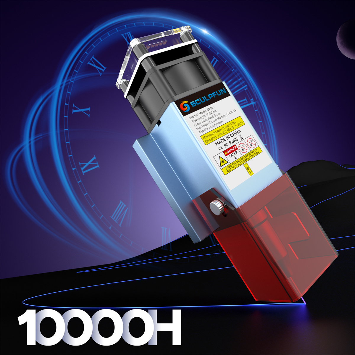 1. 10W Laser Beam Shaping Technology: Adopting the latest 10W laser beam shaping technology diode laser, the S9 Pro has an ultra-fine 0.06mm laser focus. With super cutting penetration and precision, it can cut up to 15mm thick wood, 10mm acrylic, and directly engrave ceramics and 304 stainless steel.