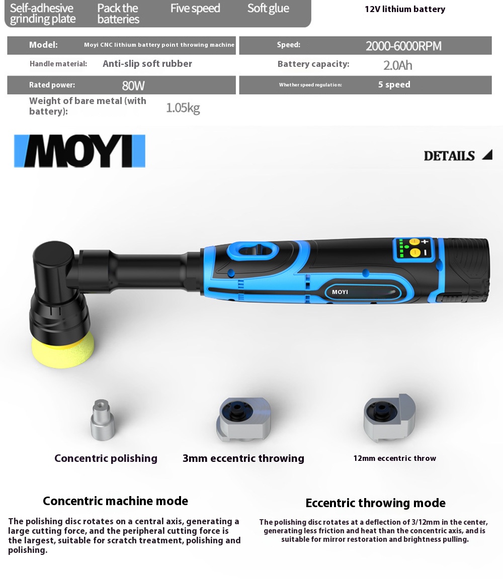 Offers concentric polishing for powerful cutting and effective detailing, along with 3mm and 12mm eccentric rotations for enhanced friction performance and surface refinement.