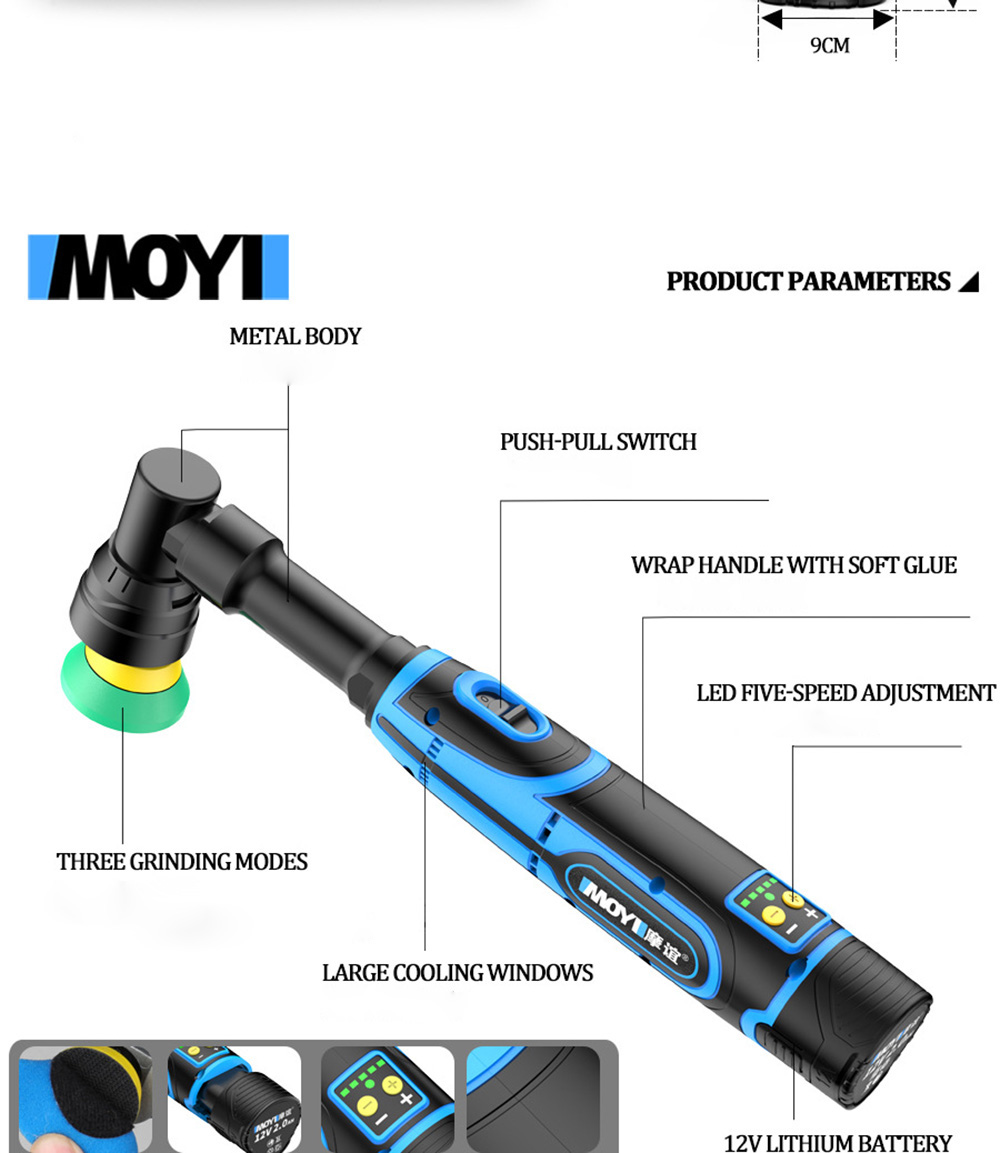 Portable Handheld Electric Polishing Machine Car Polishing Waxing Glaze Sealing Machine 5 Adjustable Speed Levels Car Polishing Maintenance