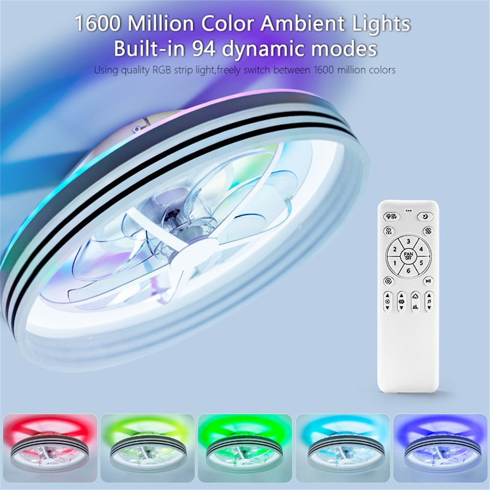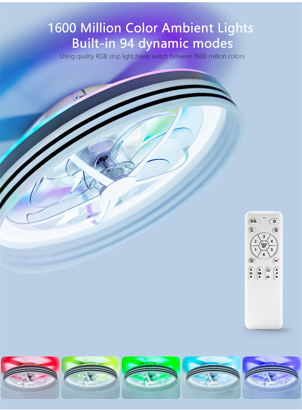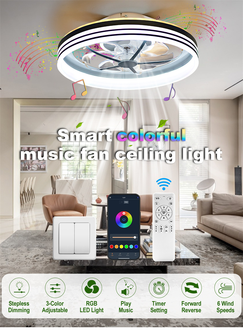 - Smart Fan Light & Multifunctional RGB Music Ceiling Lamp: Illuminate your space with RGB lighting and enjoy wireless music playback, enhancing your ambiance.