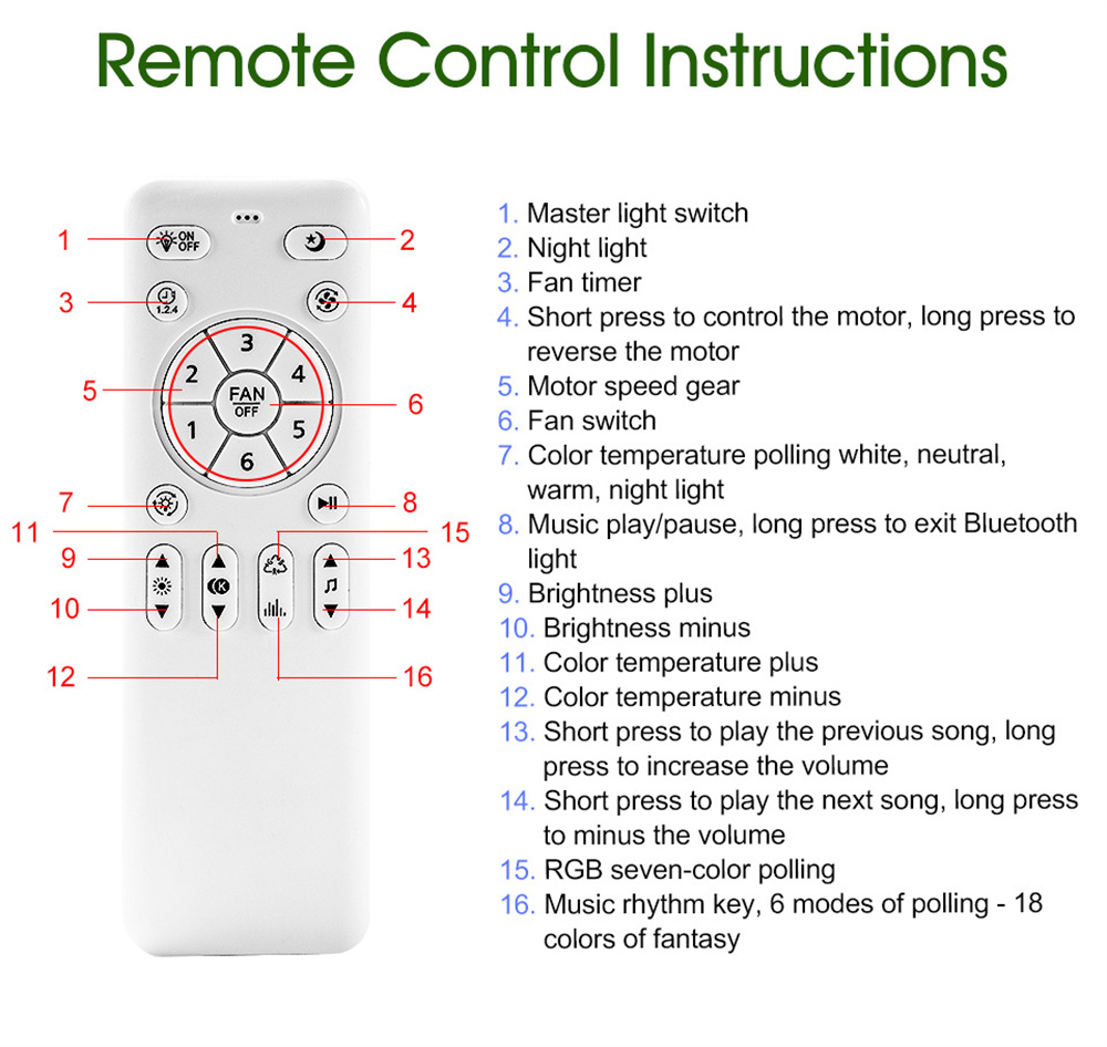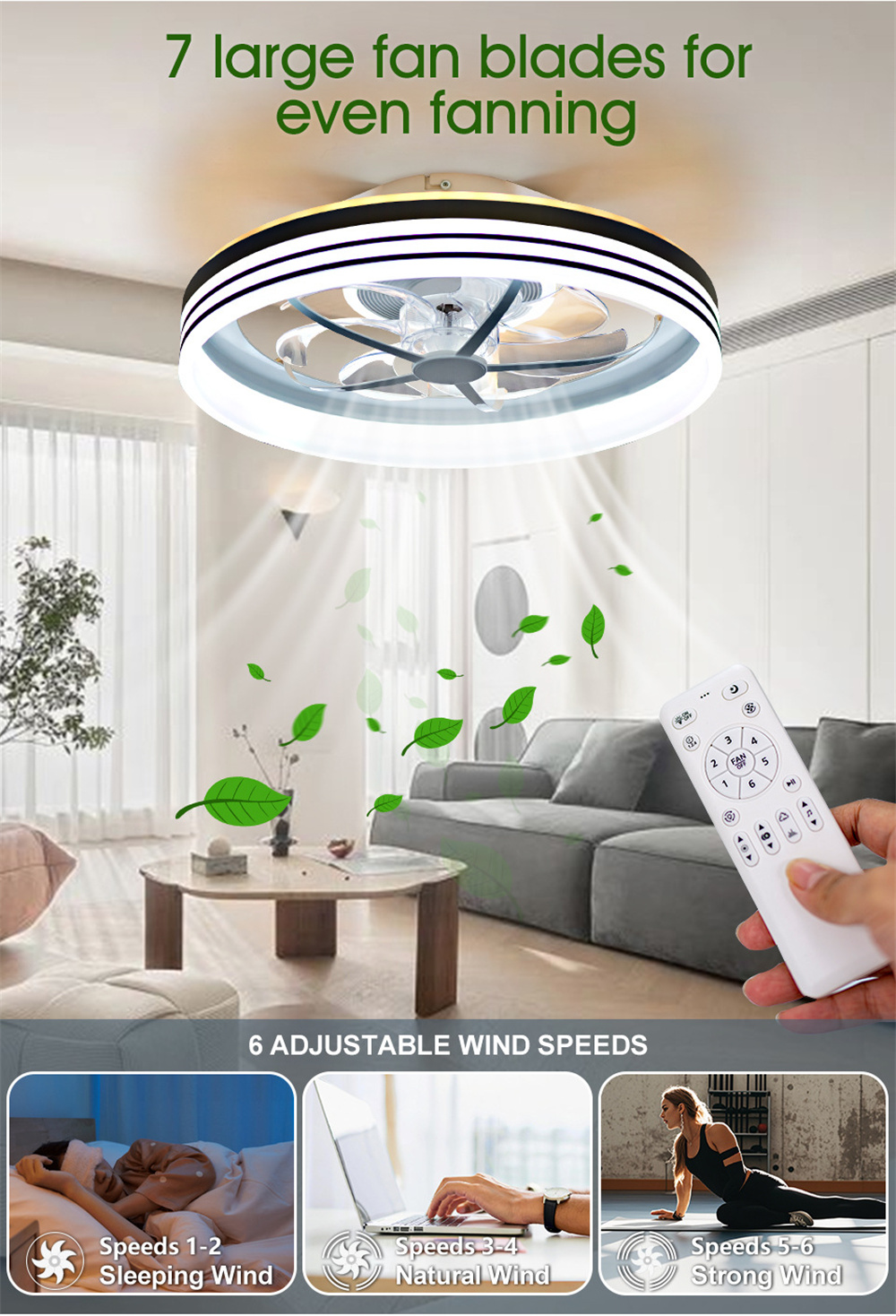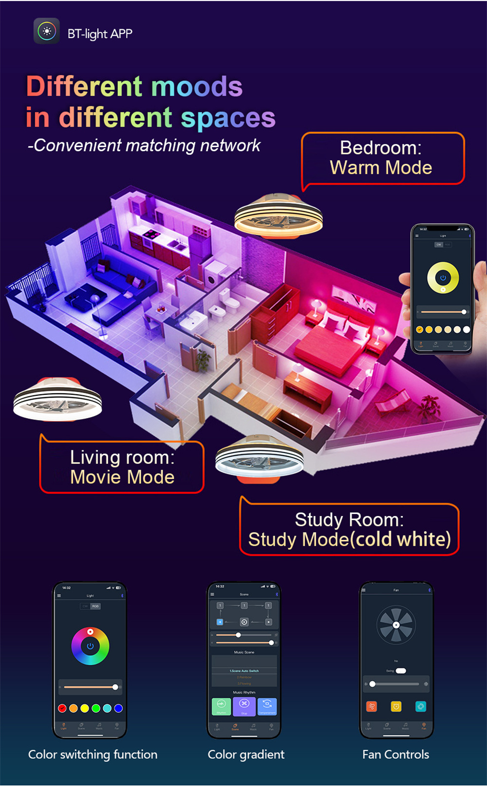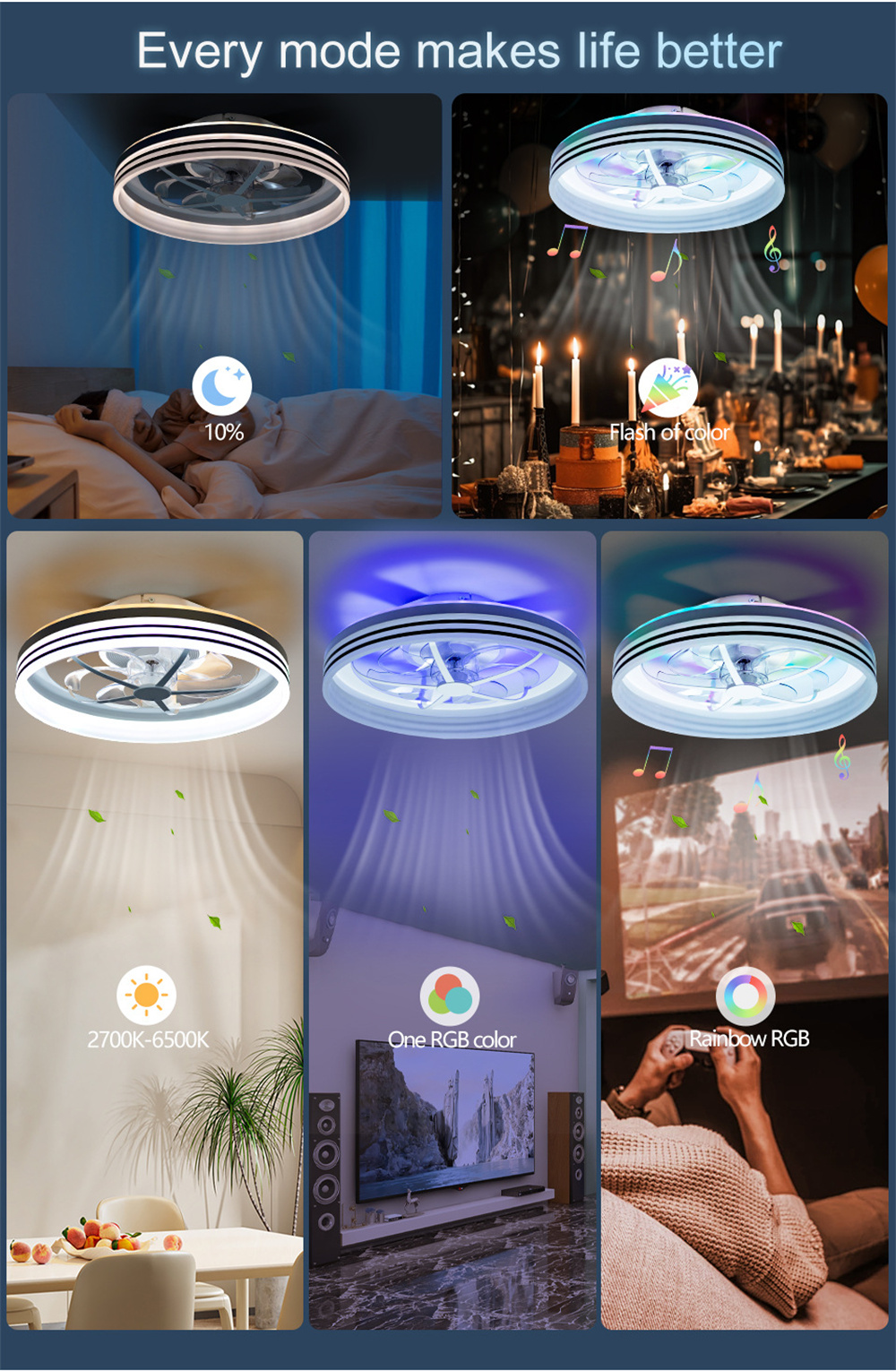 - Smart Fan Light & Multifunctional RGB Music Ceiling Lamp: Illuminate your space with RGB lighting and enjoy wireless music playback, enhancing your ambiance.