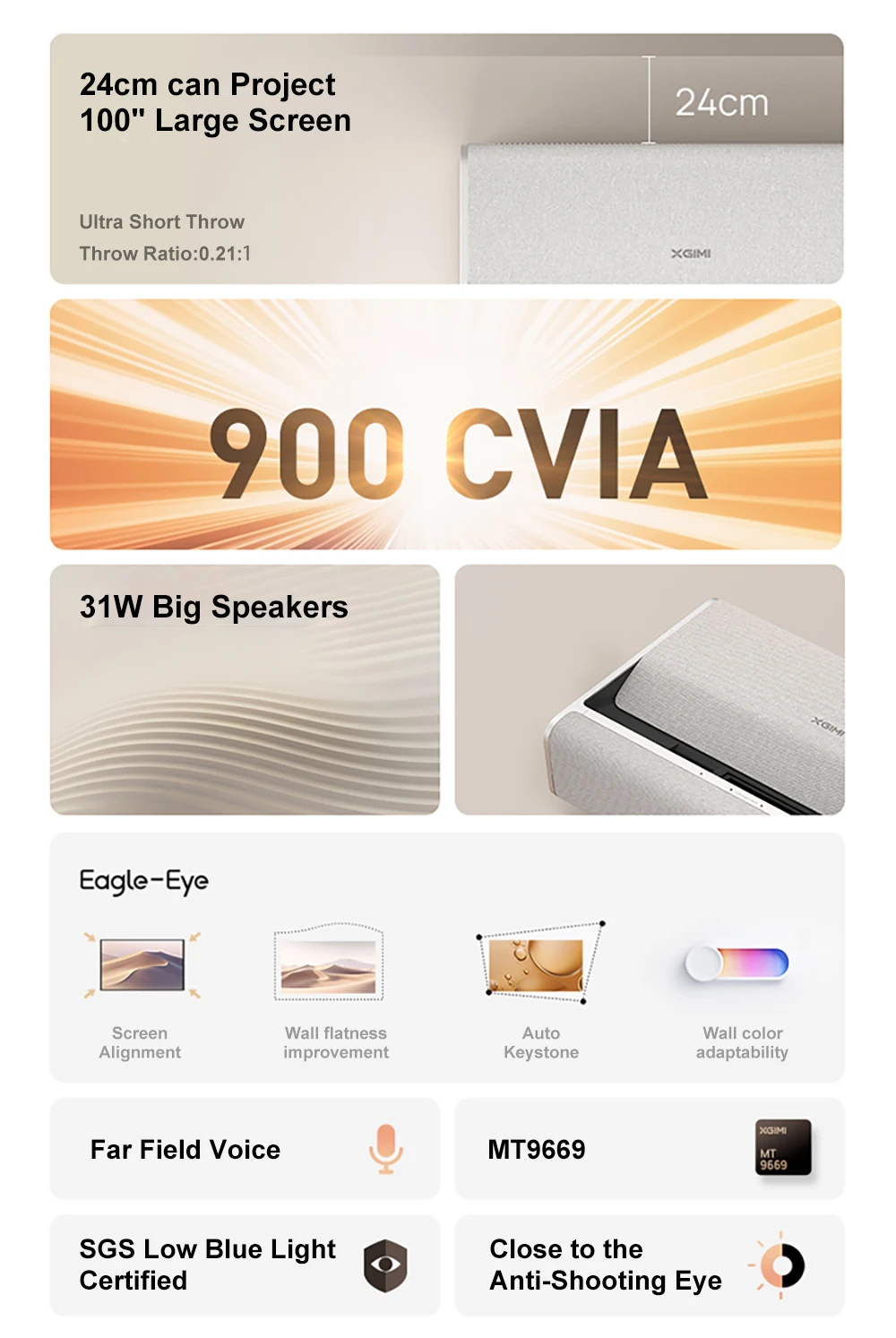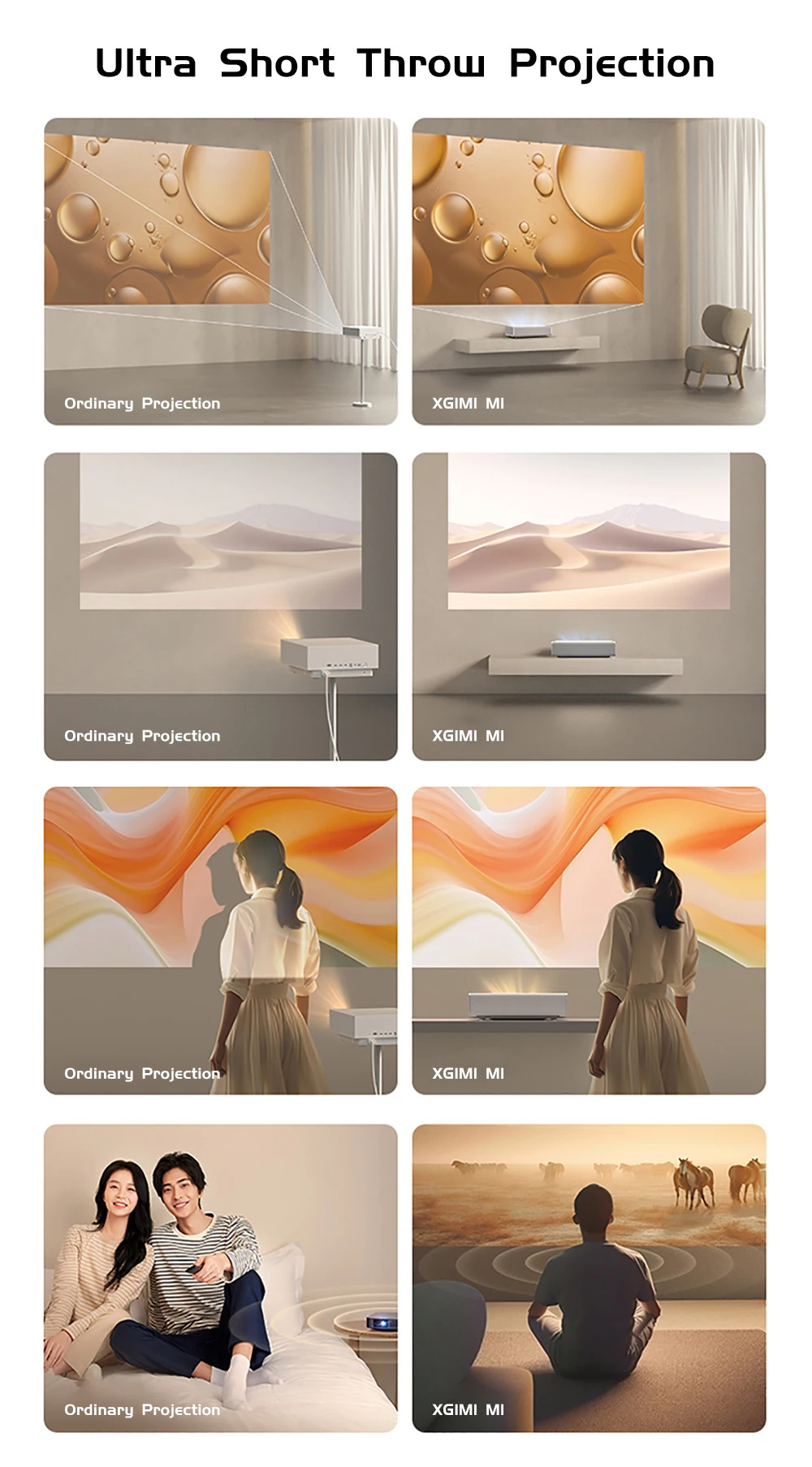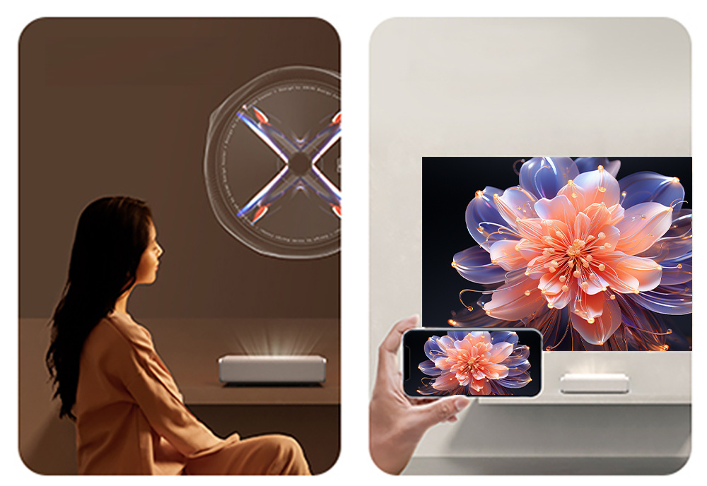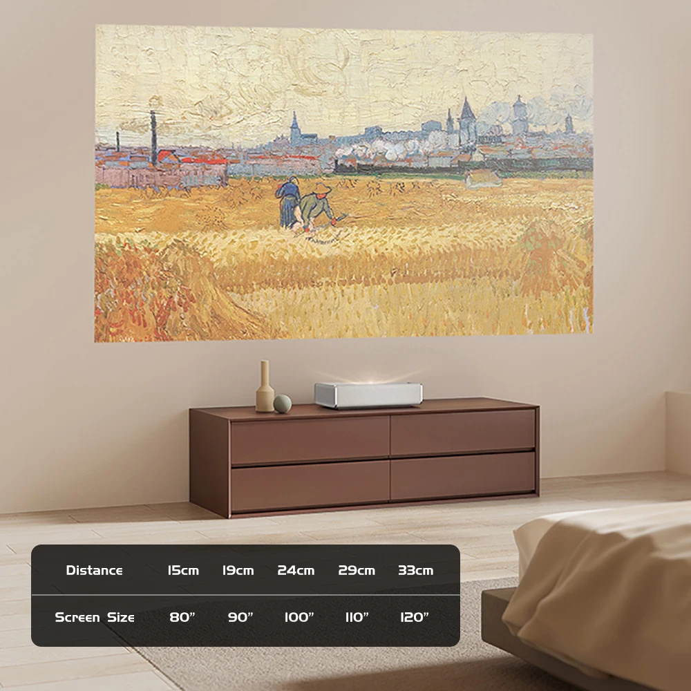 1. Ultra Short Throw Projection: Achieves a 100-inch screen at just 24cm from the wall surface.