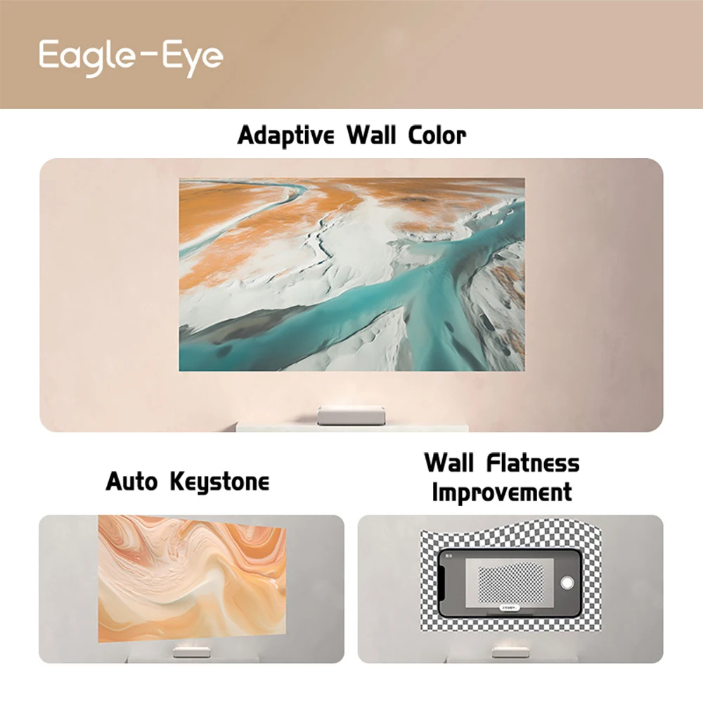 3. Enhanced Alignment: Auto Keystone correction and wall flatness adaptation for easy setup.