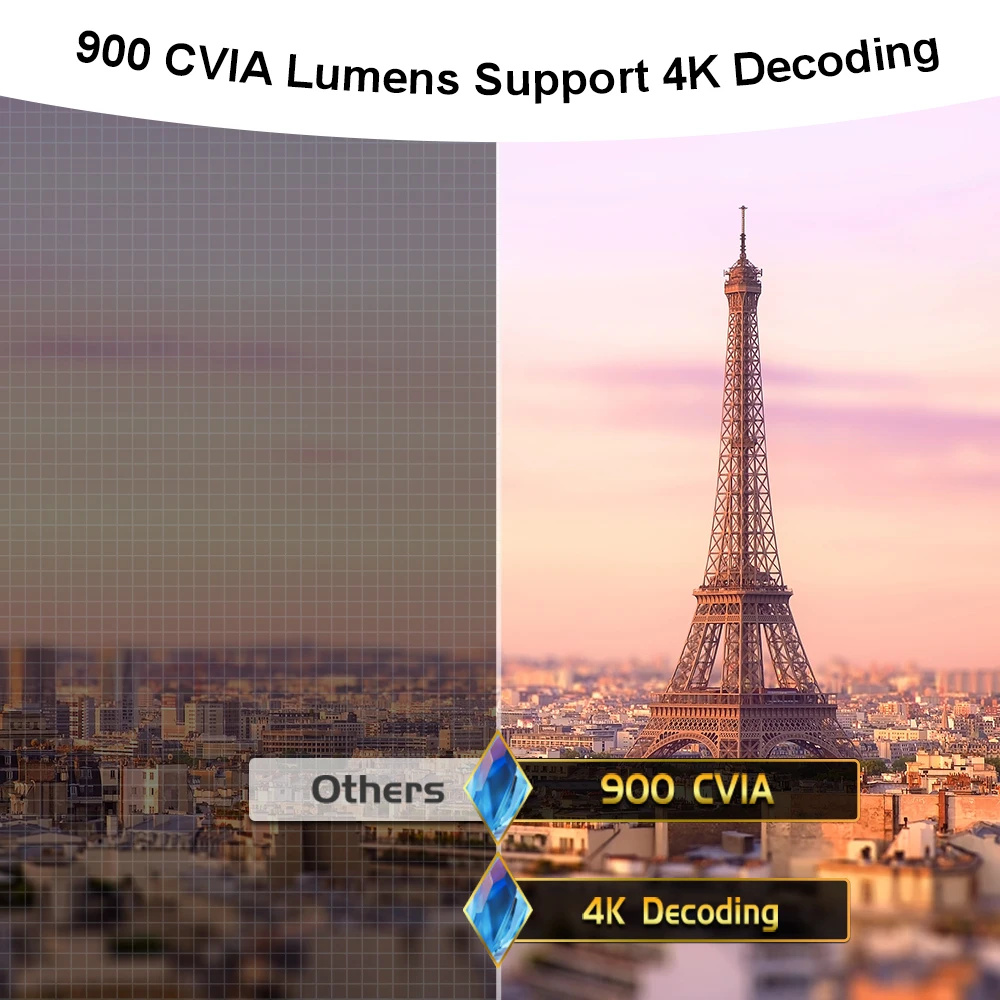 2. High Clarity and Color Accuracy: 900 CVIA Lumens and 4K decoding for vivid and sharp imagery.