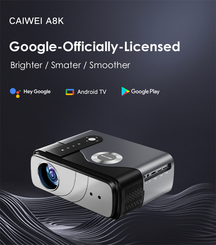 [Netfilx & Google TV Certified] CAIWEI A8K 4K UHD Projector Googles Android TV14.0 10000 Lumens 2G RAM 32G ROM Auto Focus Keystone Correction Netflix Disneys Dolby Audio Streaming Player Smart Home Cinema Theater